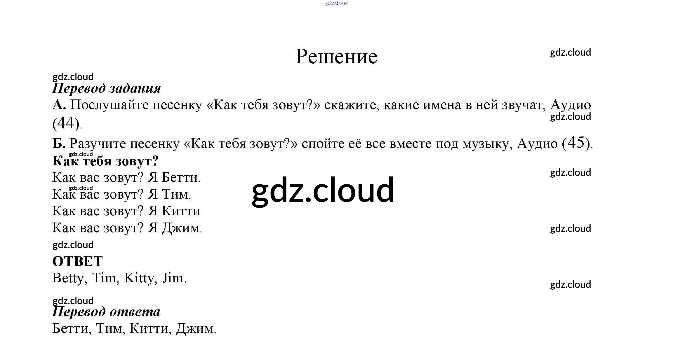 Ответ на задание 1 Учебник Английский язык за 2 (второй) класс Афанасьева, Михеева Rainbow 2017 Часть 1, 2