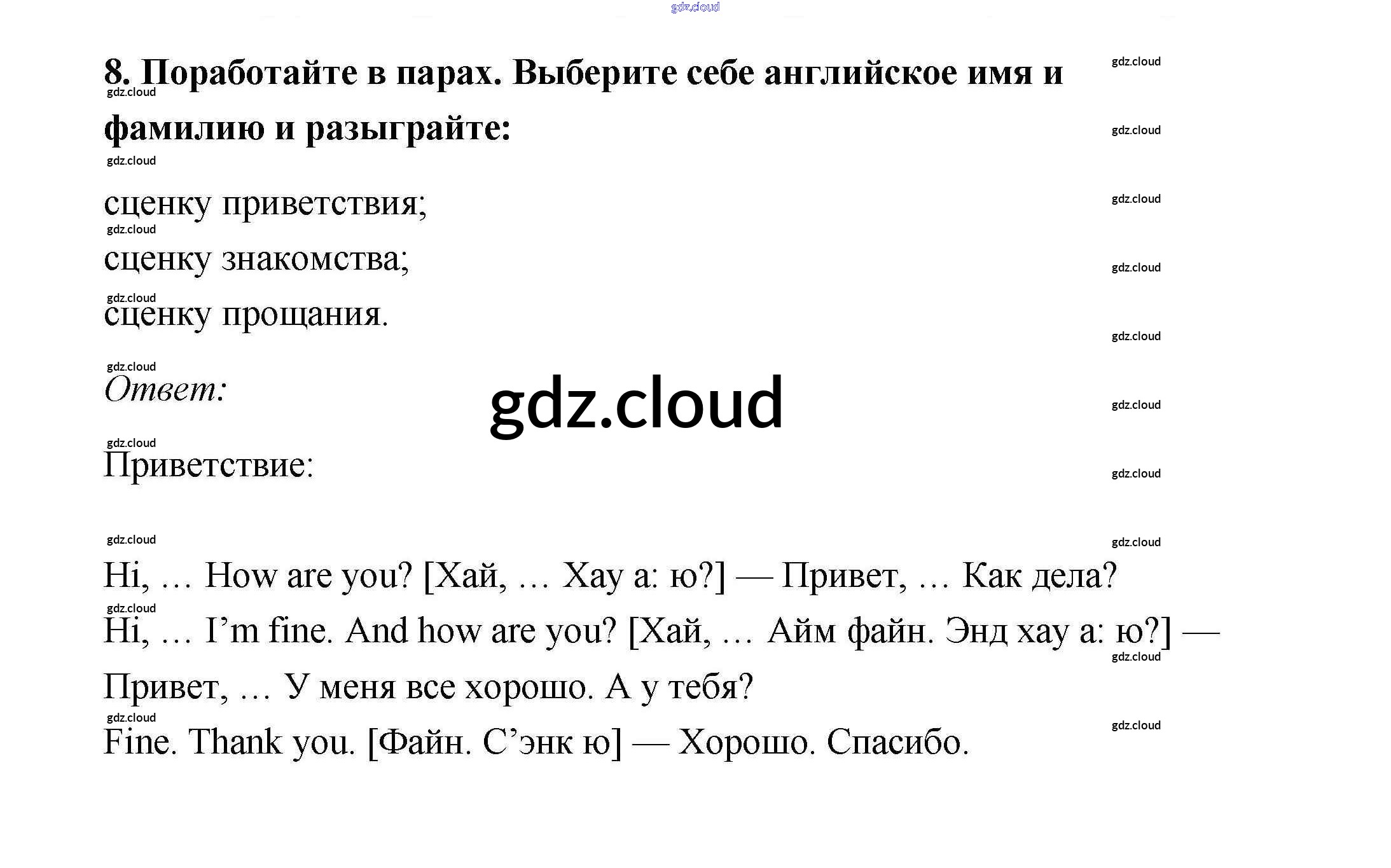 Ответ на задание 8 Учебник Английский язык за 2 (второй) класс Афанасьева, Михеева Rainbow 2017 Часть 1, 2