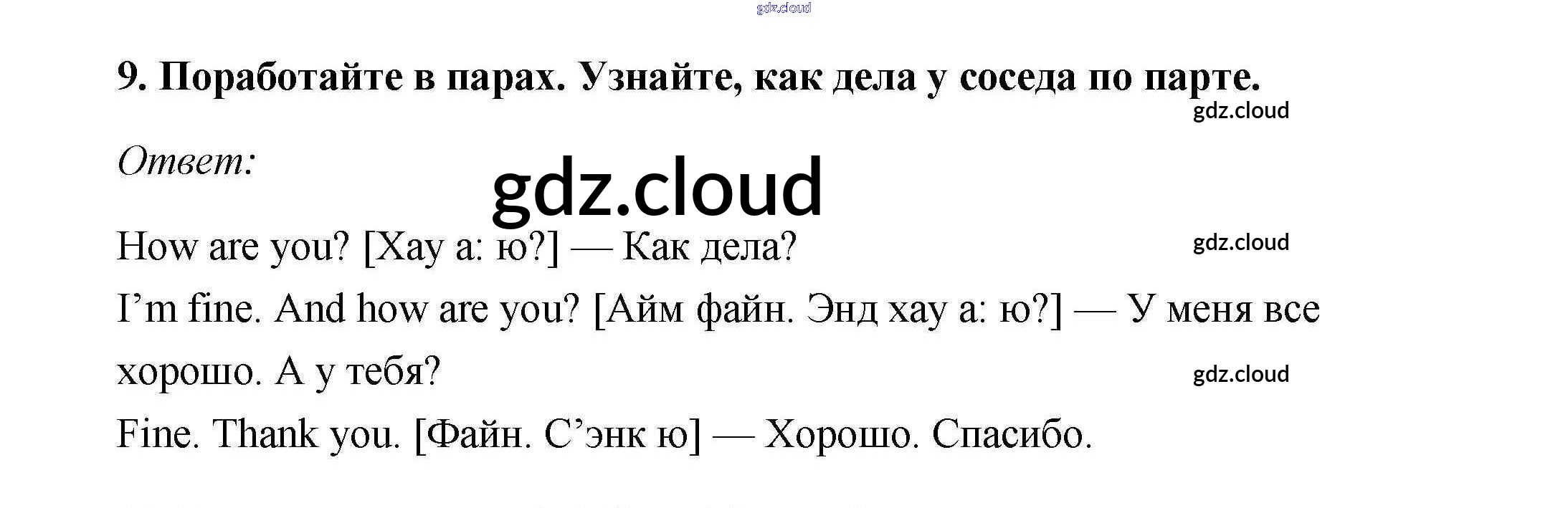 Ответ на задание 9 Учебник Английский язык за 2 (второй) класс Афанасьева, Михеева Rainbow 2017 Часть 1, 2