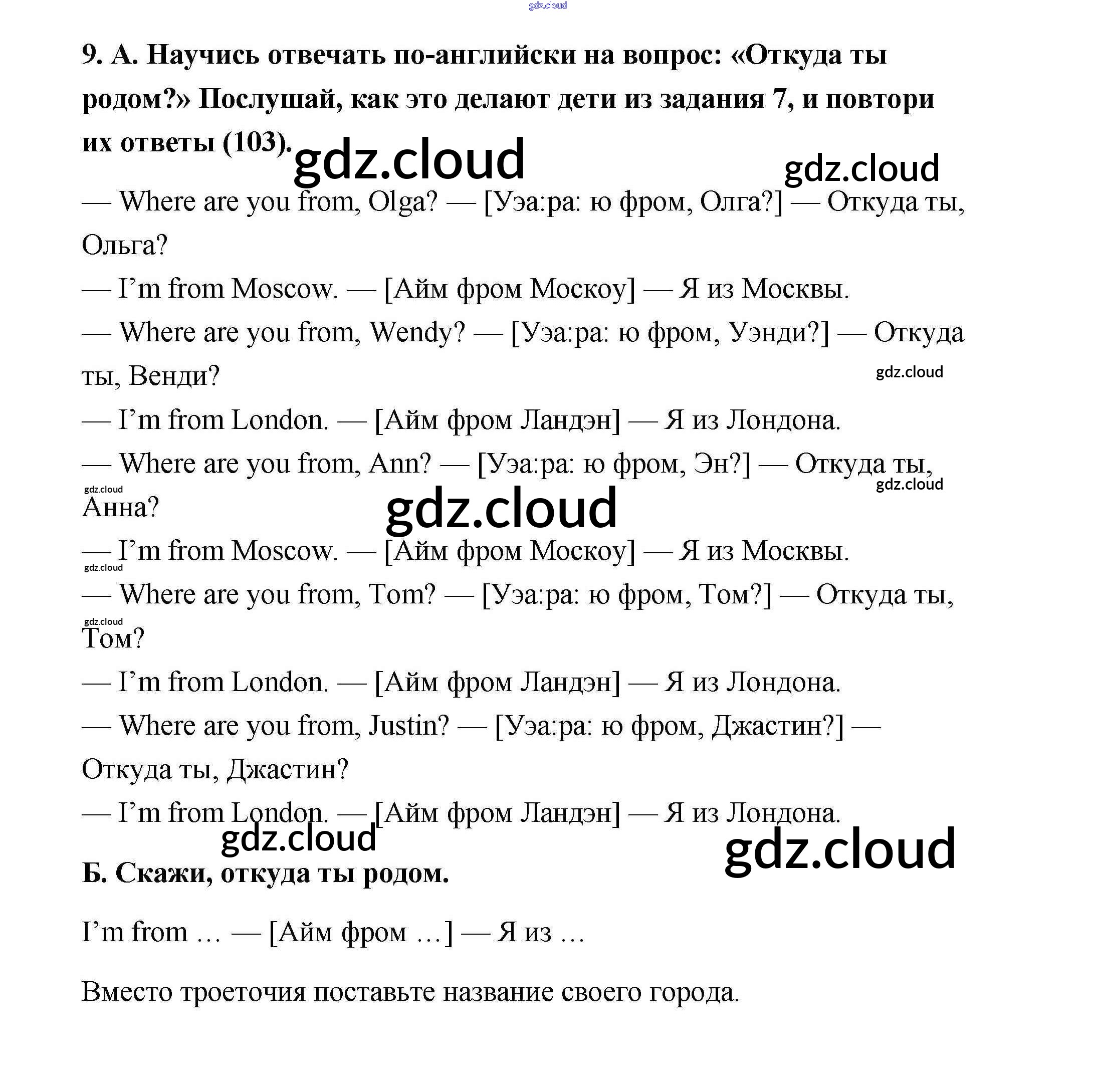 Ответ на задание 9 Учебник Английский язык за 2 (второй) класс Афанасьева, Михеева Rainbow 2017 Часть 1, 2