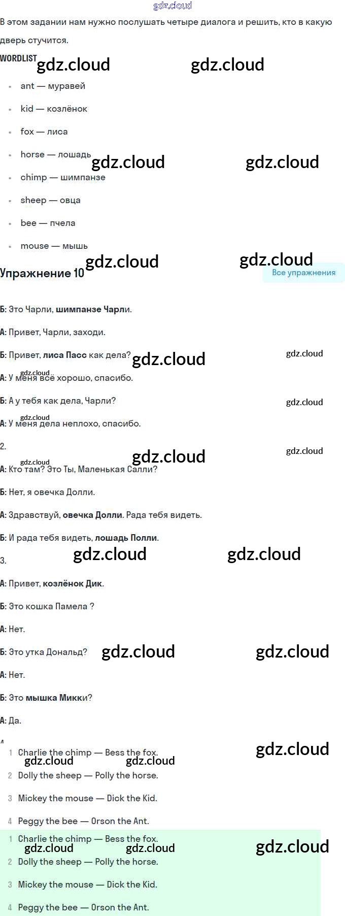 Ответ на задание 10 Учебник Английский язык за 2 (второй) класс Афанасьева, Михеева Rainbow 2017 Часть 1, 2