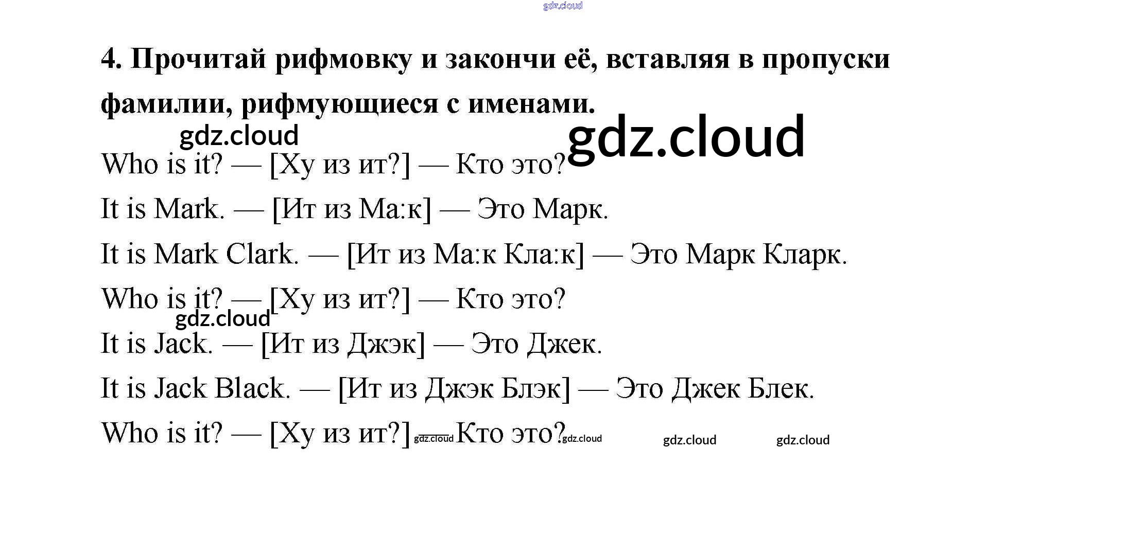 Ответ на задание 4 Учебник Английский язык за 2 (второй) класс Афанасьева, Михеева Rainbow 2017 Часть 1, 2