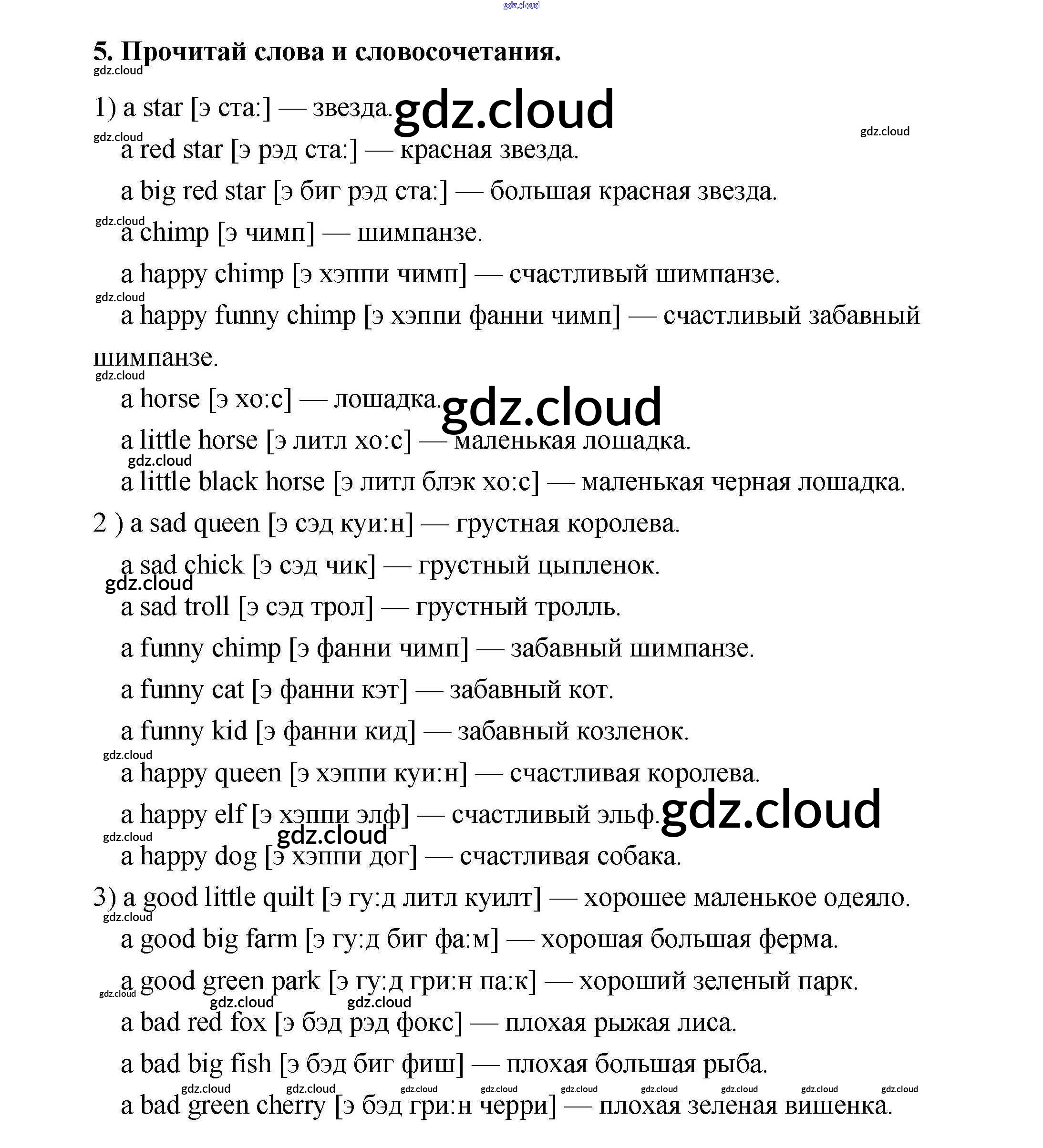 Ответ на задание 5 Учебник Английский язык за 2 (второй) класс Афанасьева, Михеева Rainbow 2017 Часть 1, 2