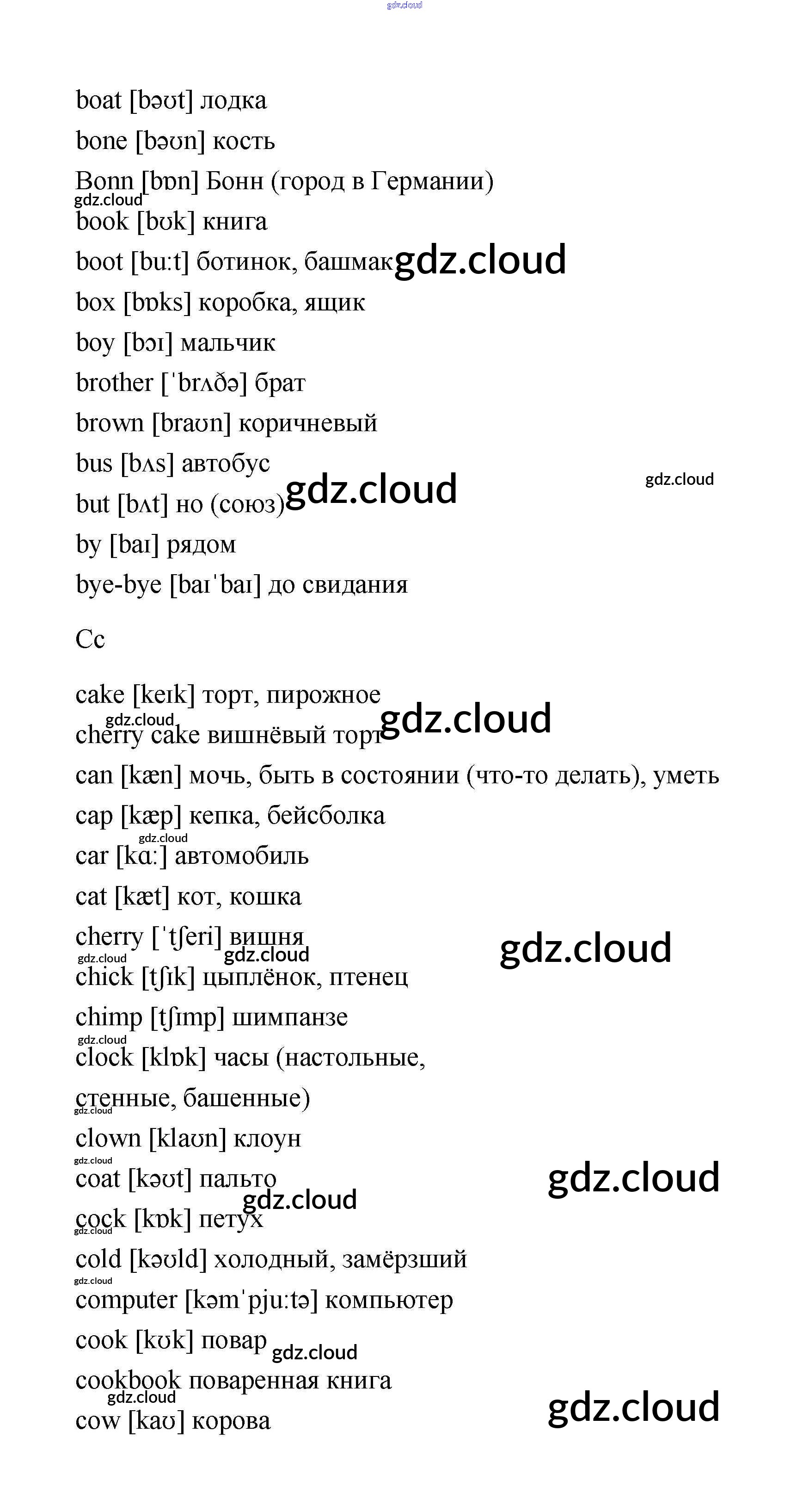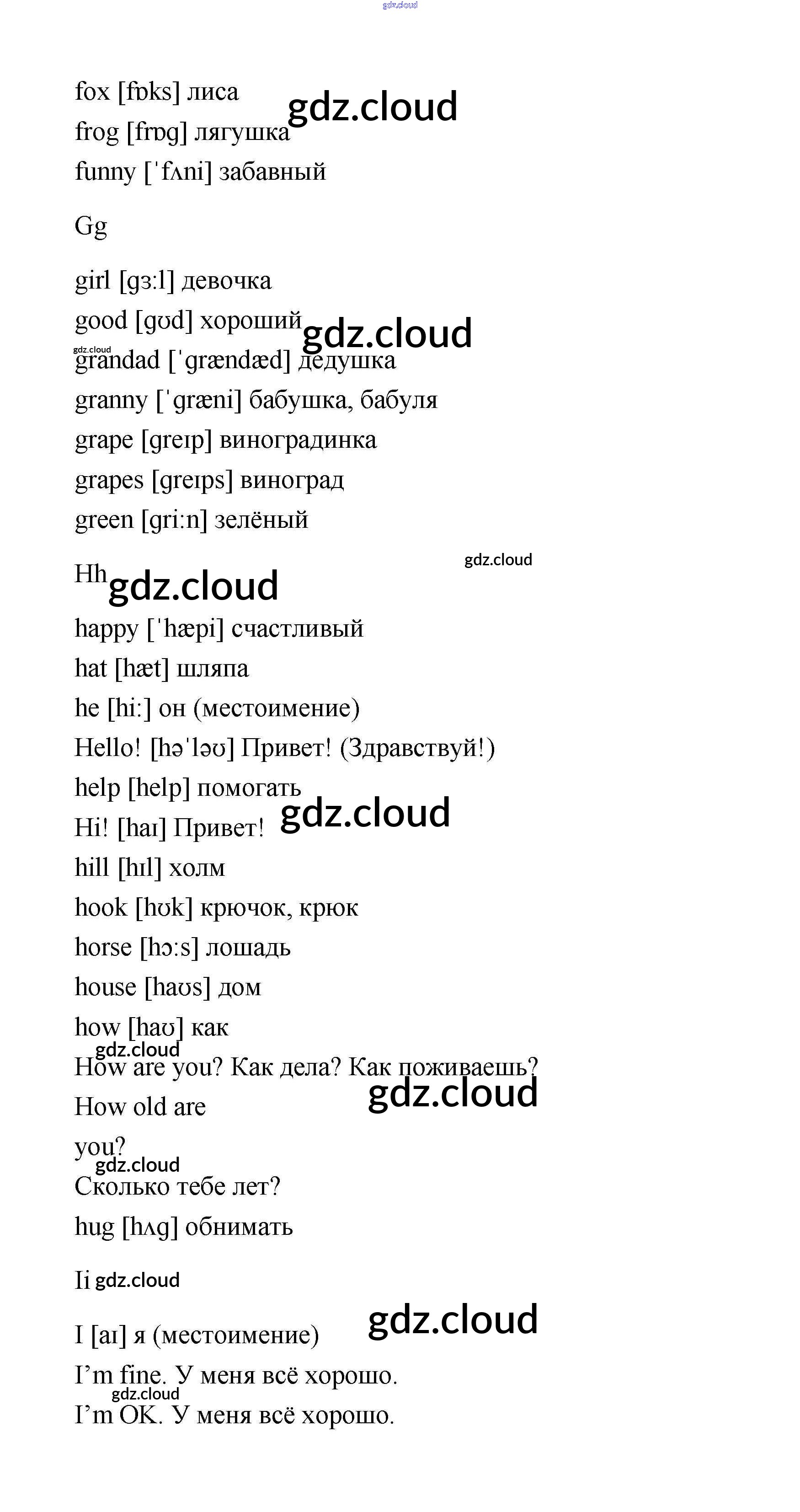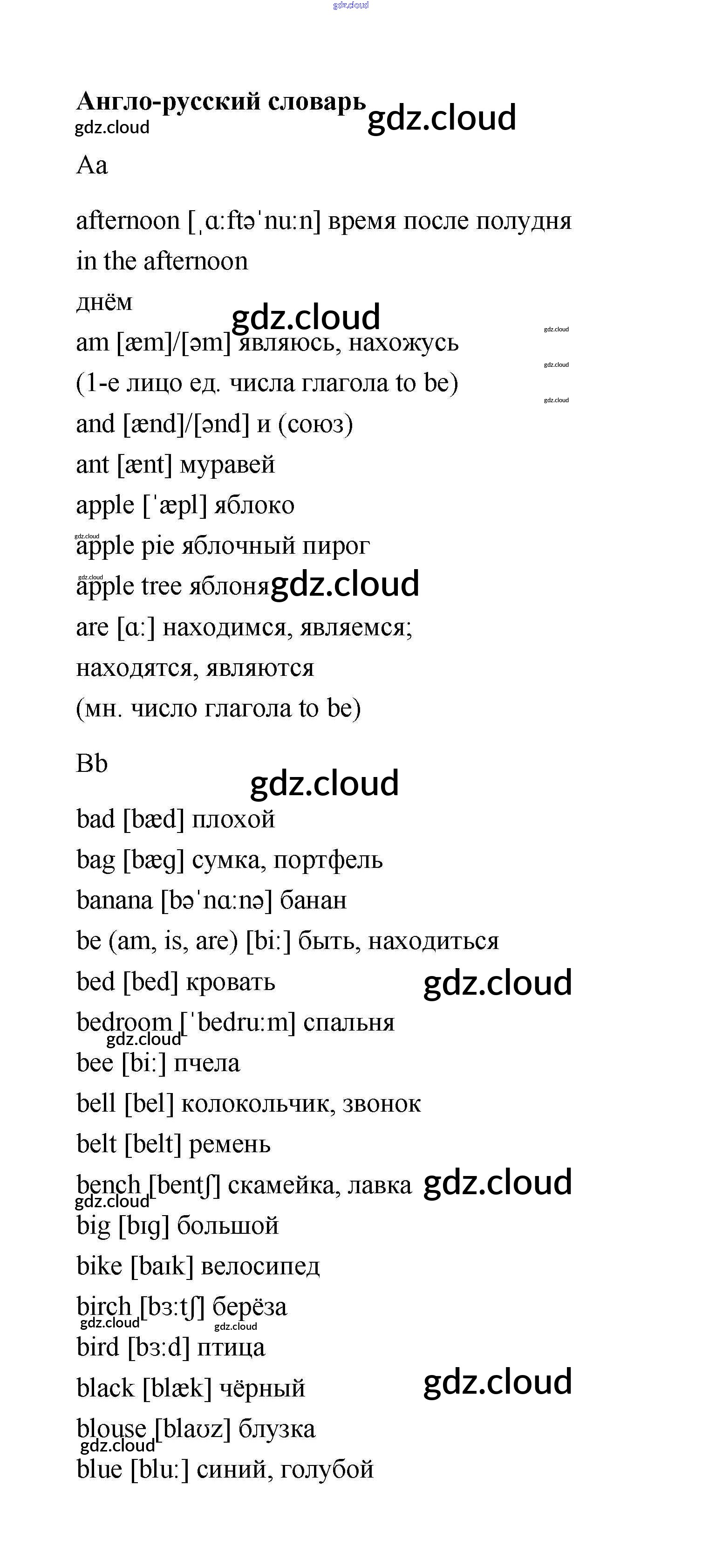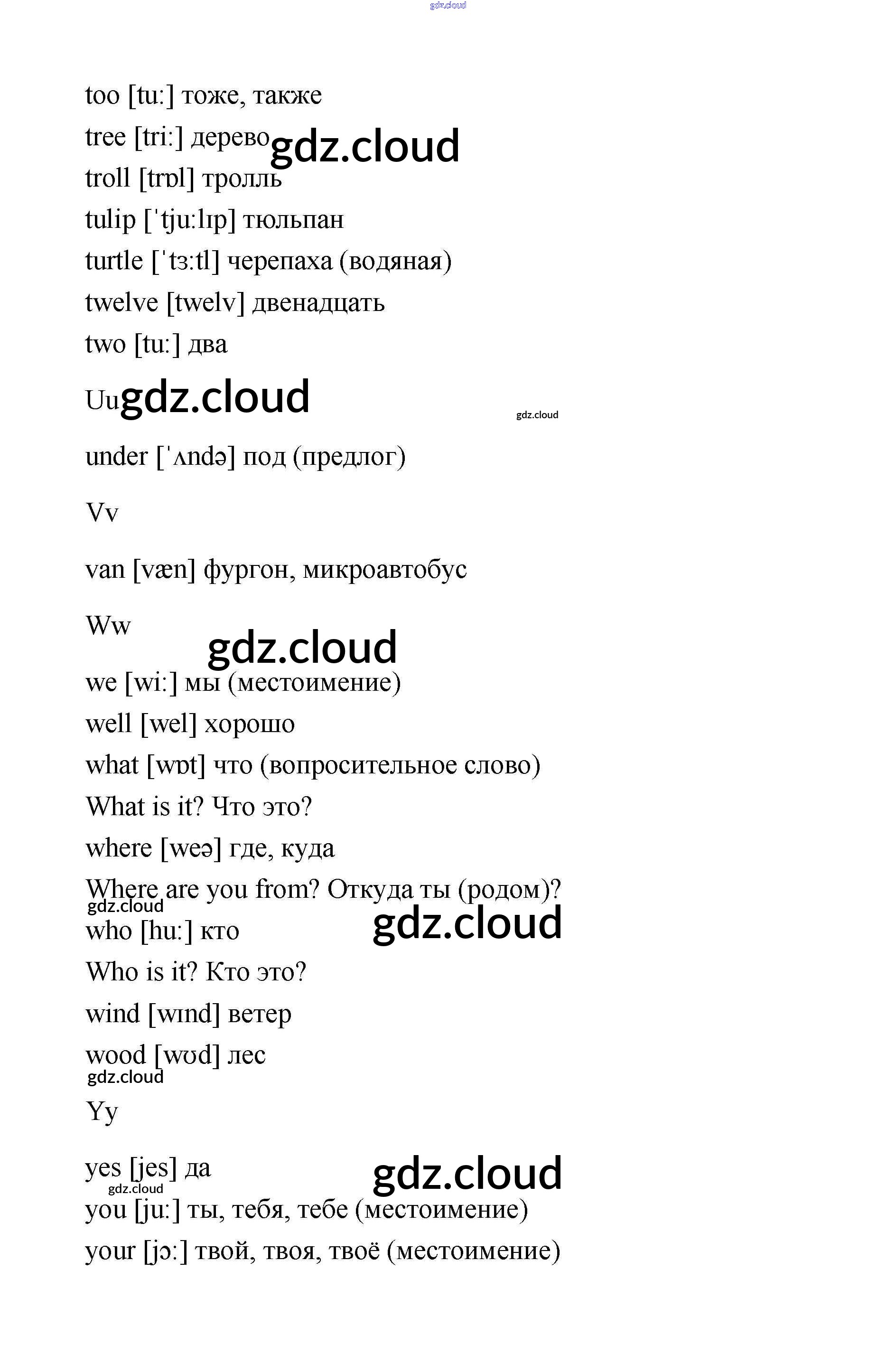 Словарь Ответы. Часть 1 по Английскому языку 2 класс Учебник Афанасьева Rainbow Часть 1, 2 Дрофа