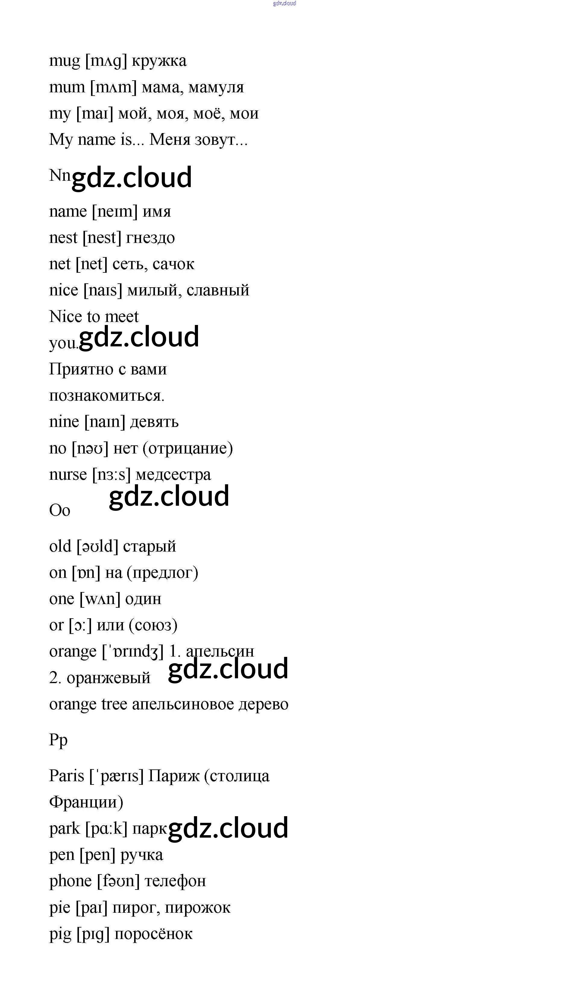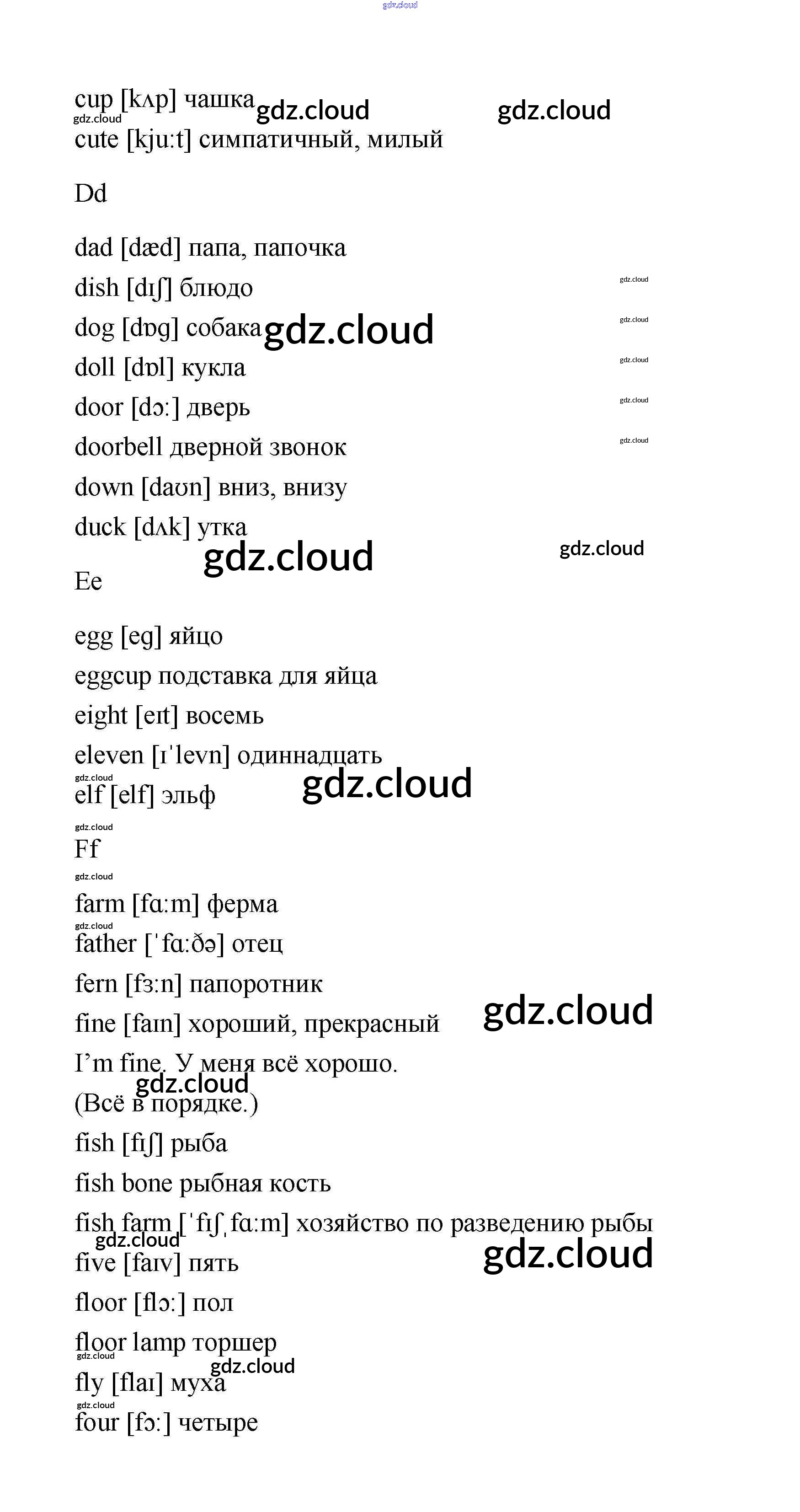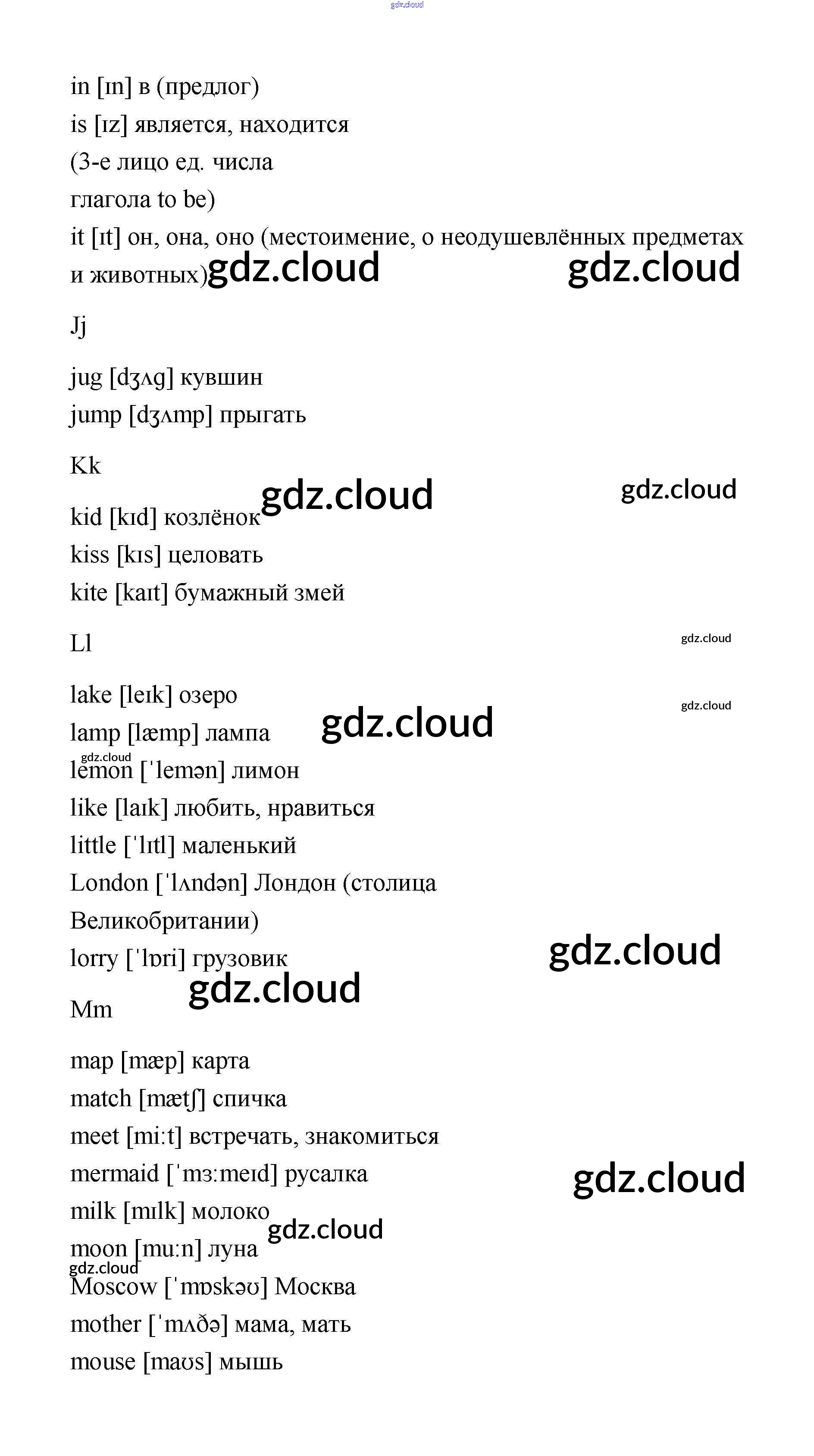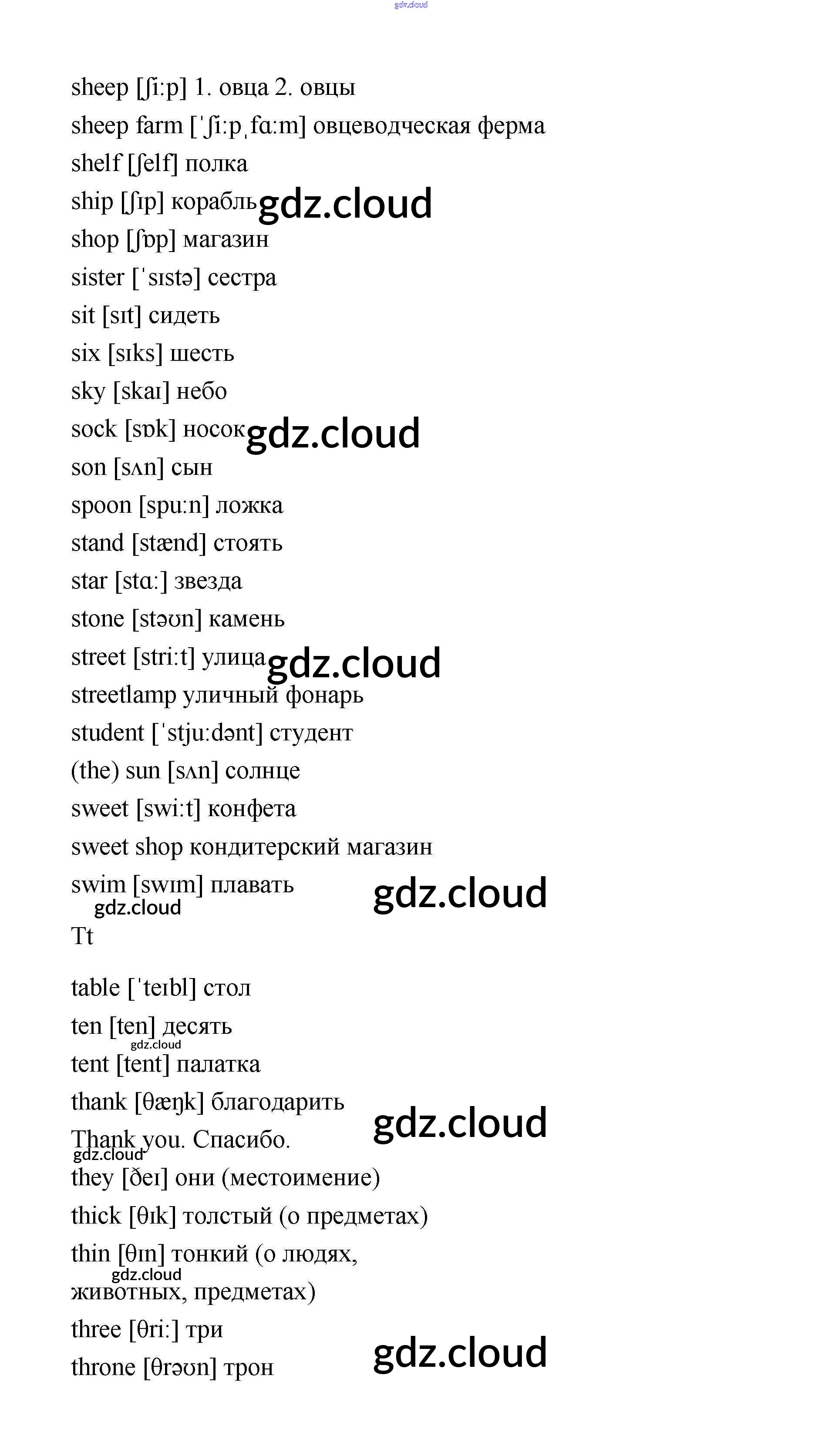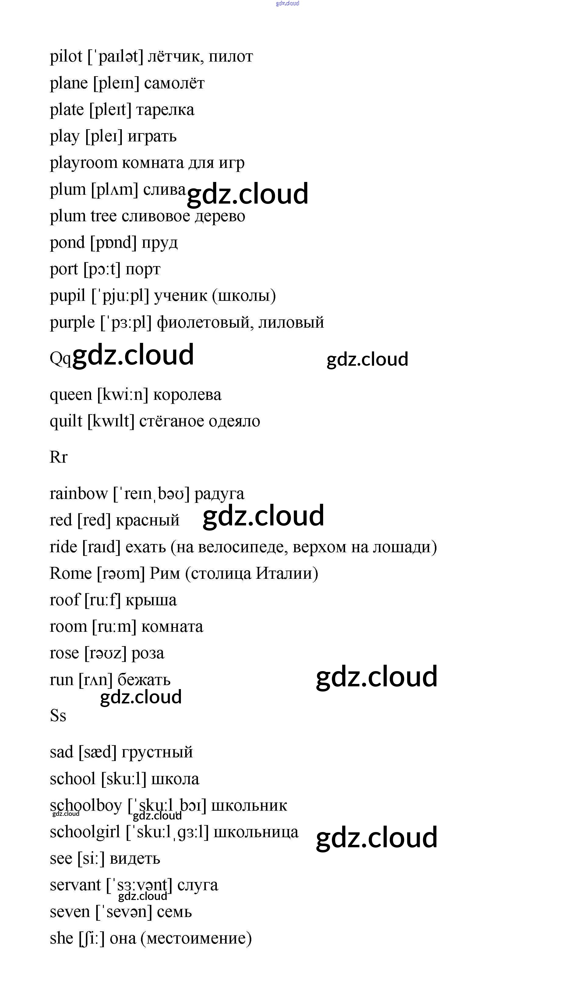 Словарь Ответы. Часть 1 по Английскому языку 2 класс Учебник Афанасьева Rainbow Часть 1, 2 Дрофа