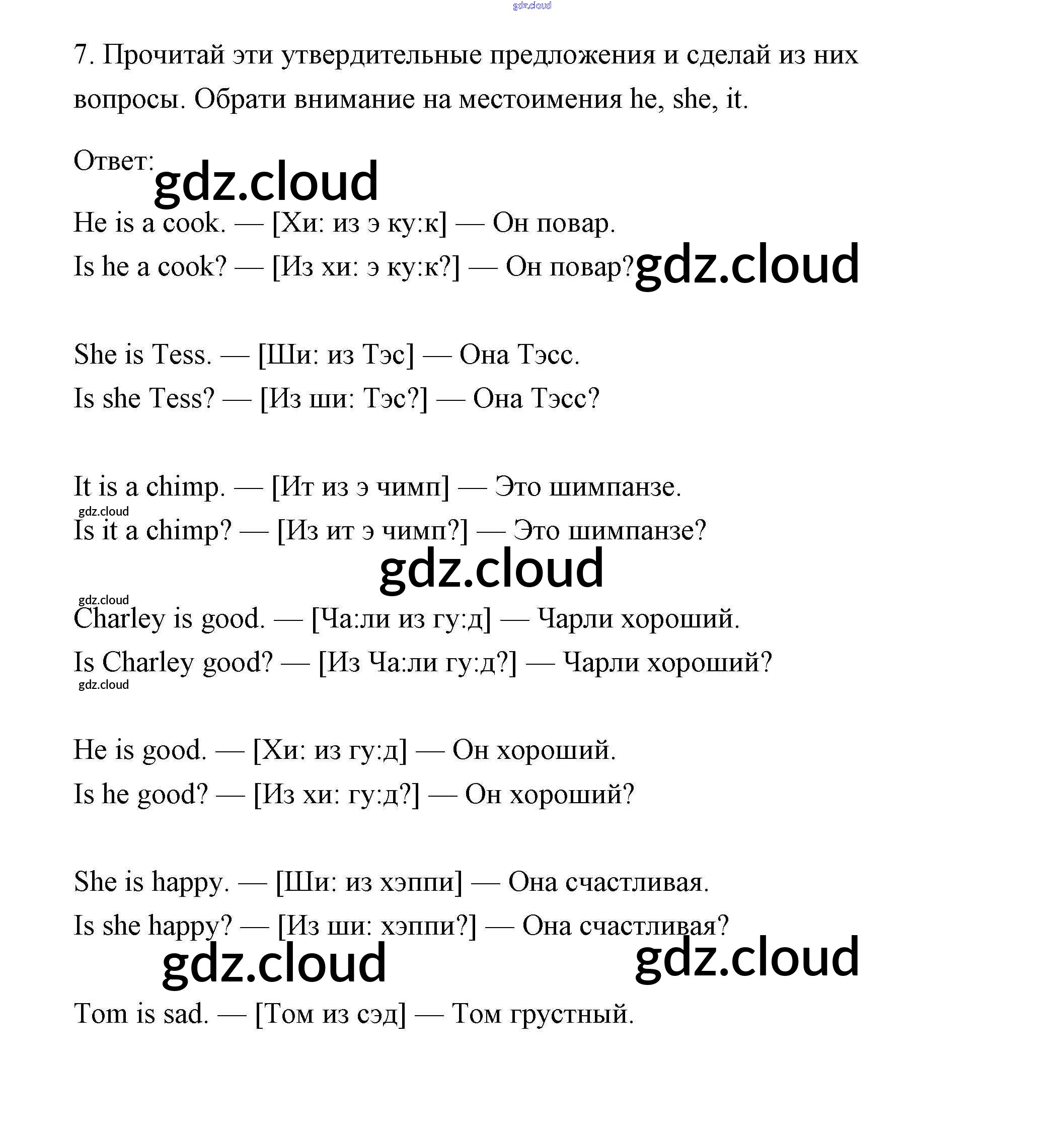 Ответ на задание 7 Учебник Английский язык за 2 (второй) класс Афанасьева, Михеева Rainbow 2017 Часть 1, 2