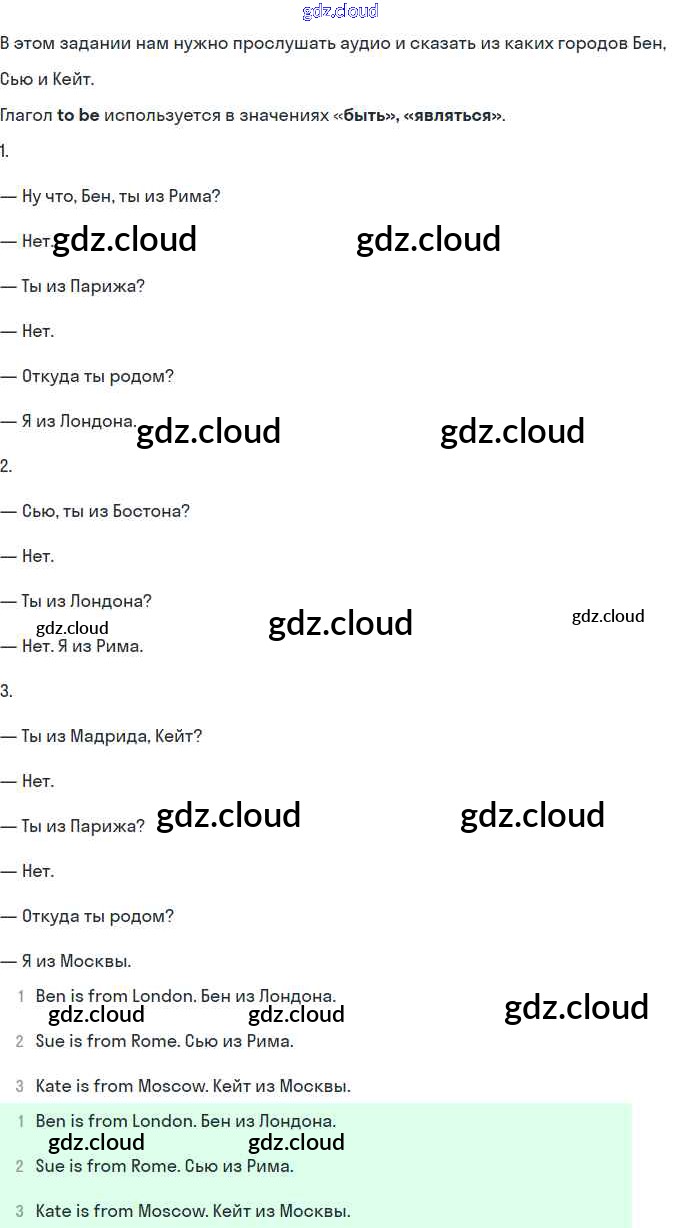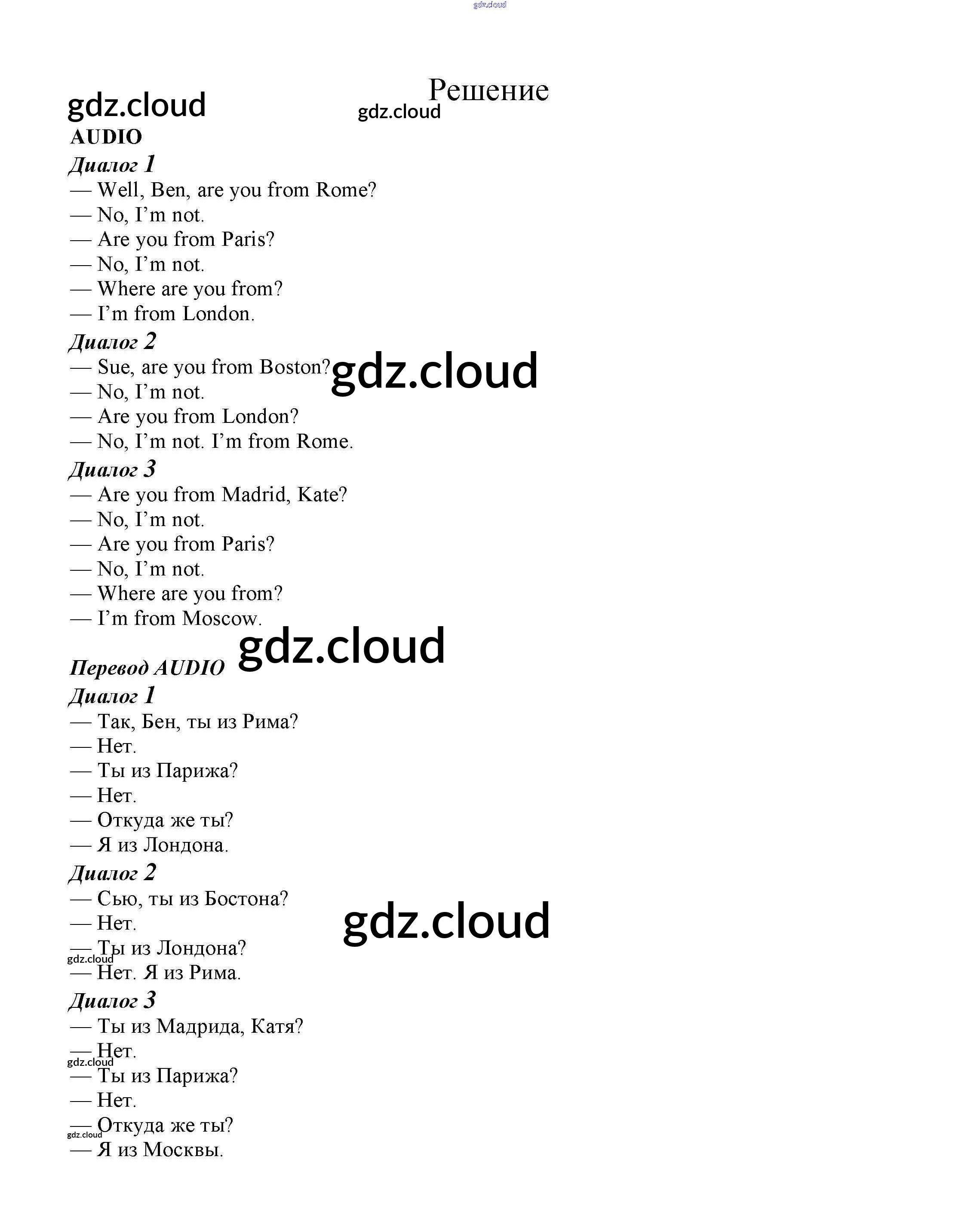 Ответ на задание 1 Учебник Английский язык за 2 (второй) класс Афанасьева, Михеева Rainbow 2017 Часть 1, 2