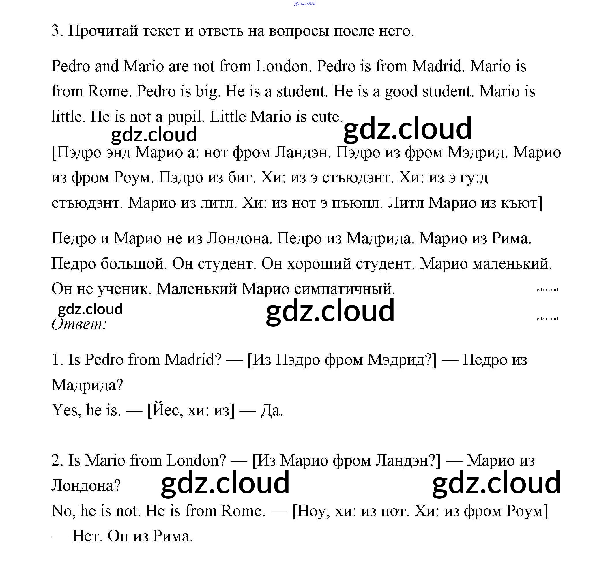 Ответ на задание 3 Учебник Английский язык за 2 (второй) класс Афанасьева, Михеева Rainbow 2017 Часть 1, 2