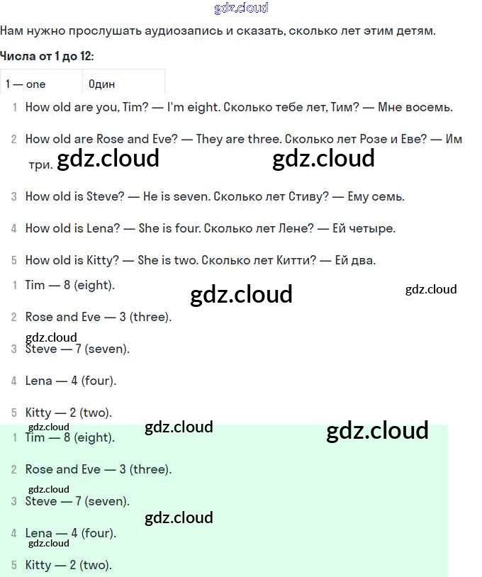 Ответ на задание 1 Учебник Английский язык за 2 (второй) класс Афанасьева, Михеева Rainbow 2017 Часть 1, 2