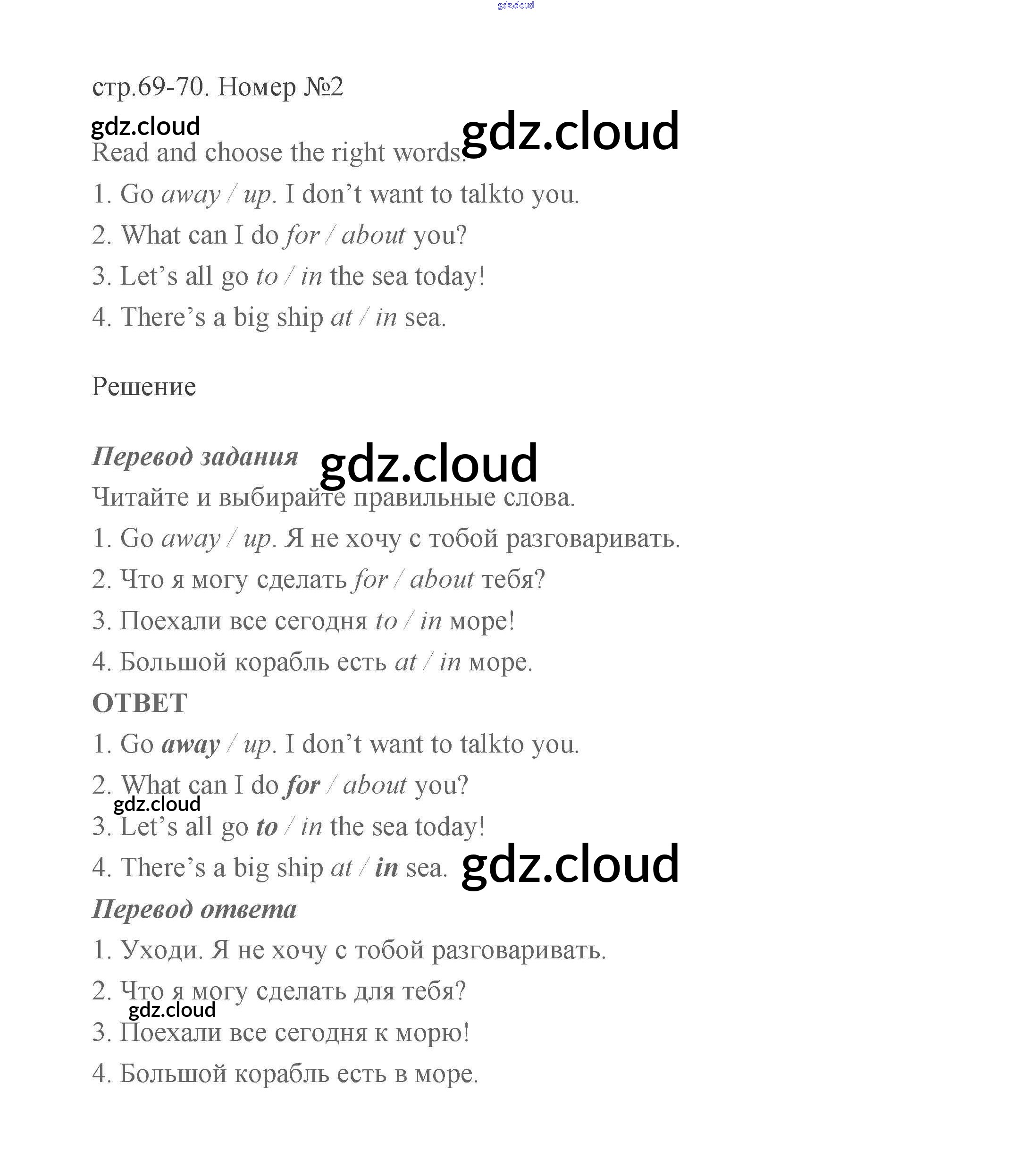 Ответ на задание стр.69-70 Учебник Английский язык за 2 (второй) класс Баранова, Эванс, Дули, Копылова, Мильруд Starlight Углубленный уровень 2016 Часть 1, 2