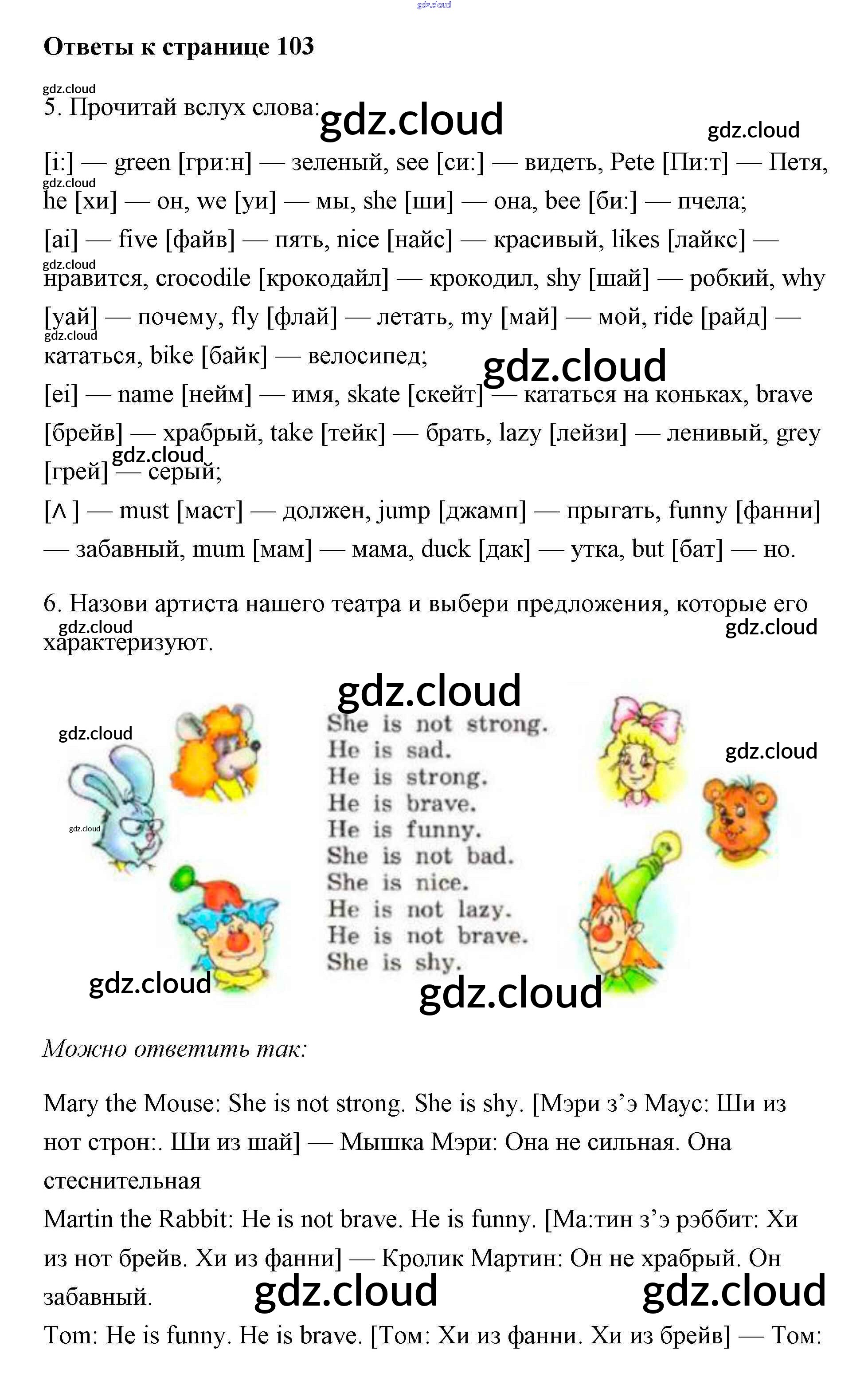Ответ на задание 103 Учебник Английский язык за 2 (второй) класс Биболетова, Денисенко, Трубанева Enjoy English 2012 ФГОС онлайн и без номера телефона.