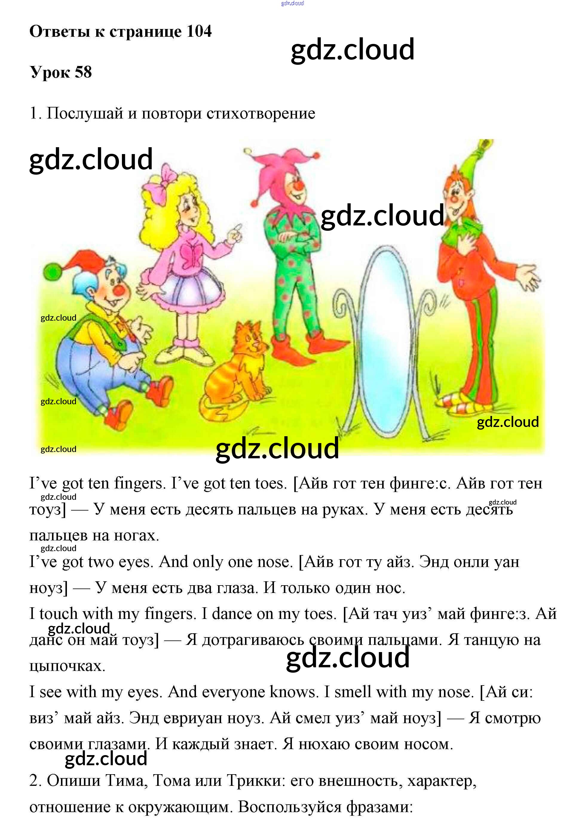 Ответ на задание 104 Учебник Английский язык за 2 (второй) класс Биболетова, Денисенко, Трубанева Enjoy English 2012 ФГОС онлайн и без номера телефона.