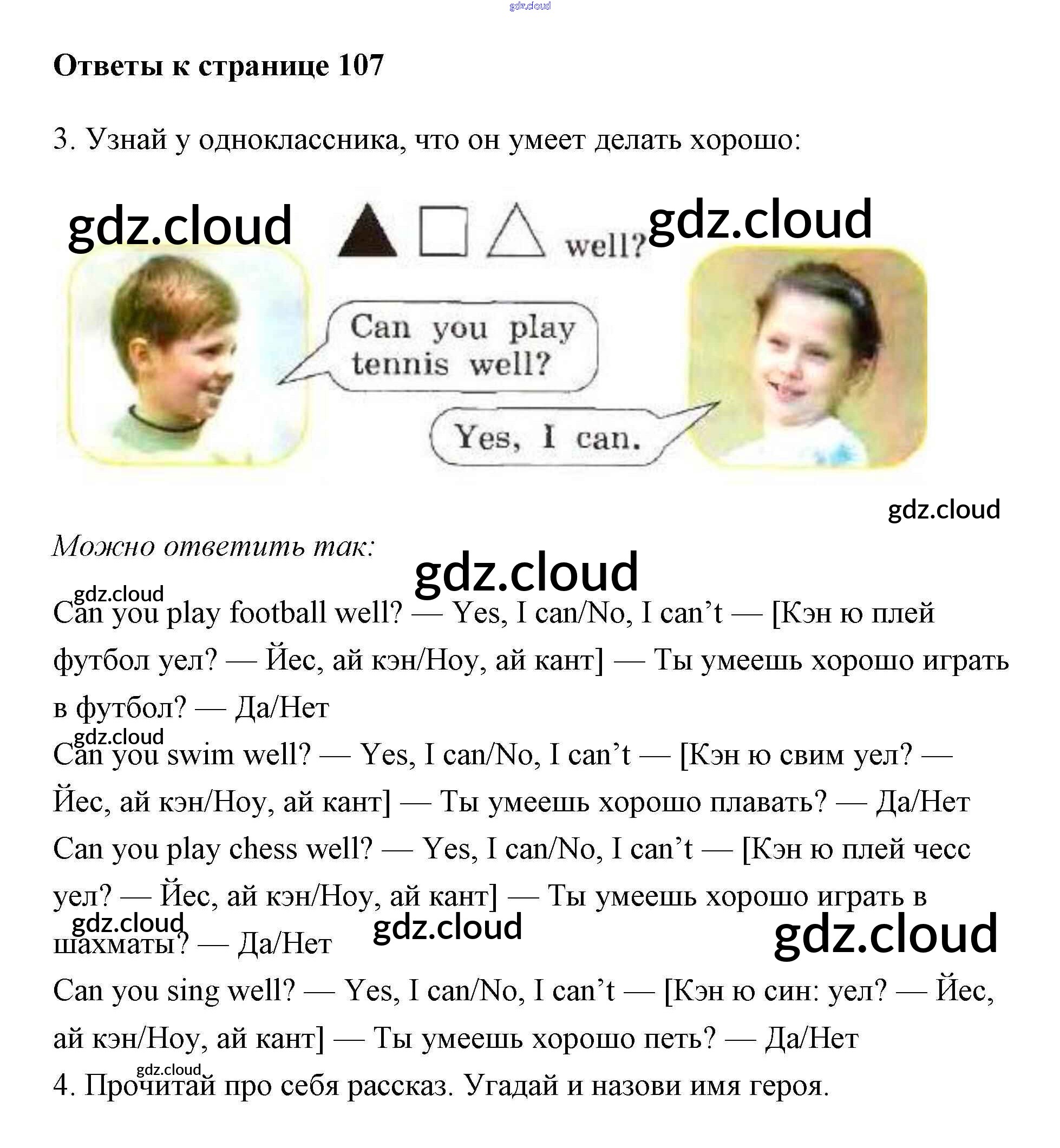 Ответ на задание 107 Учебник Английский язык за 2 (второй) класс Биболетова, Денисенко, Трубанева Enjoy English 2012 ФГОС онлайн и без номера телефона.