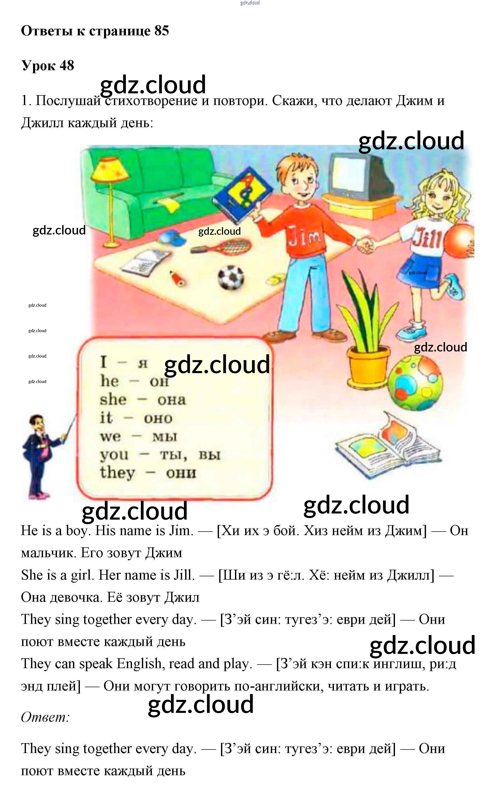 Ответ на задание 85 Учебник Английский язык за 2 (второй) класс Биболетова, Денисенко, Трубанева Enjoy English 2012 ФГОС онлайн и без номера телефона.