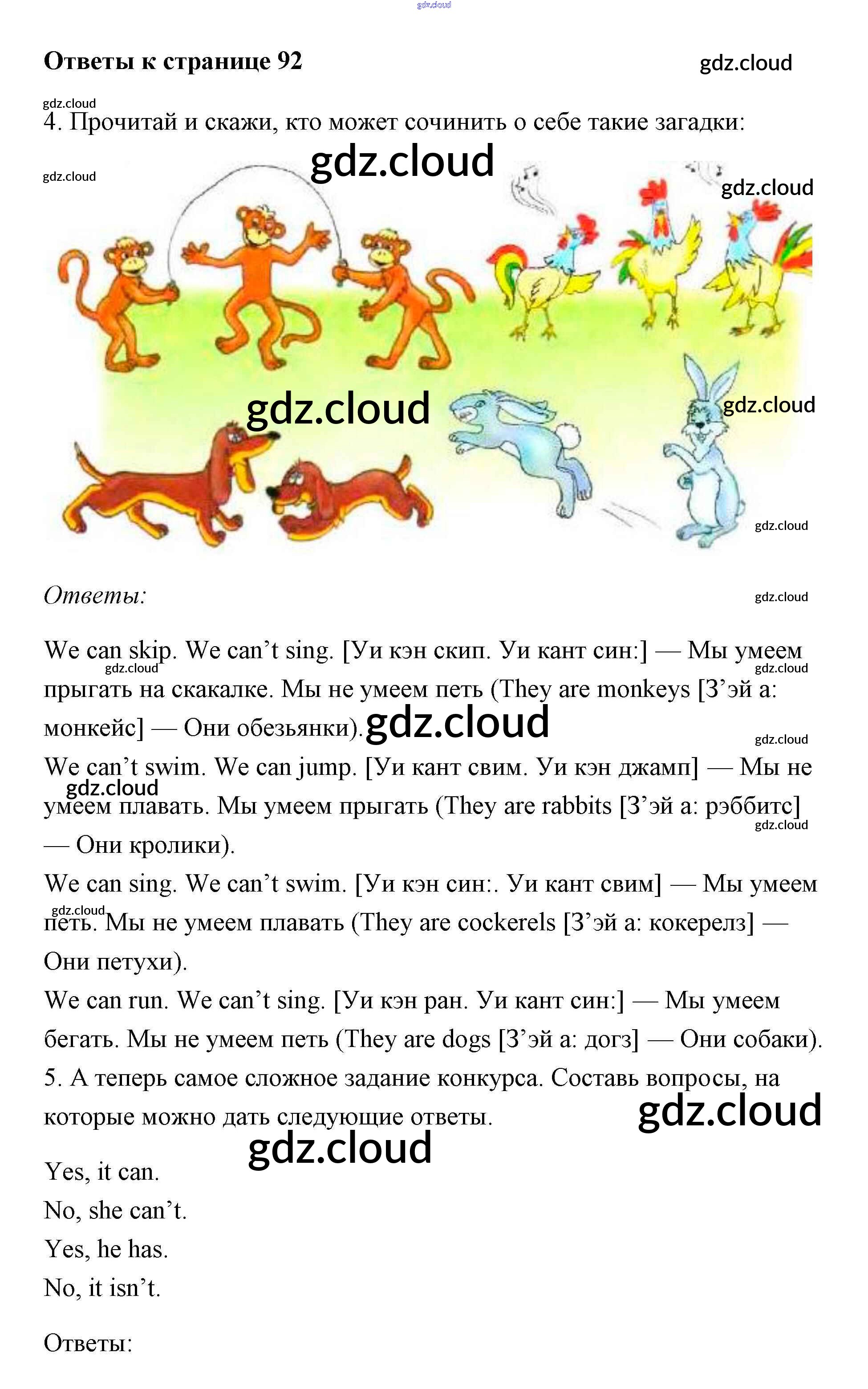 Ответ на задание 92 Учебник Английский язык за 2 (второй) класс Биболетова, Денисенко, Трубанева Enjoy English 2012 ФГОС онлайн и без номера телефона.