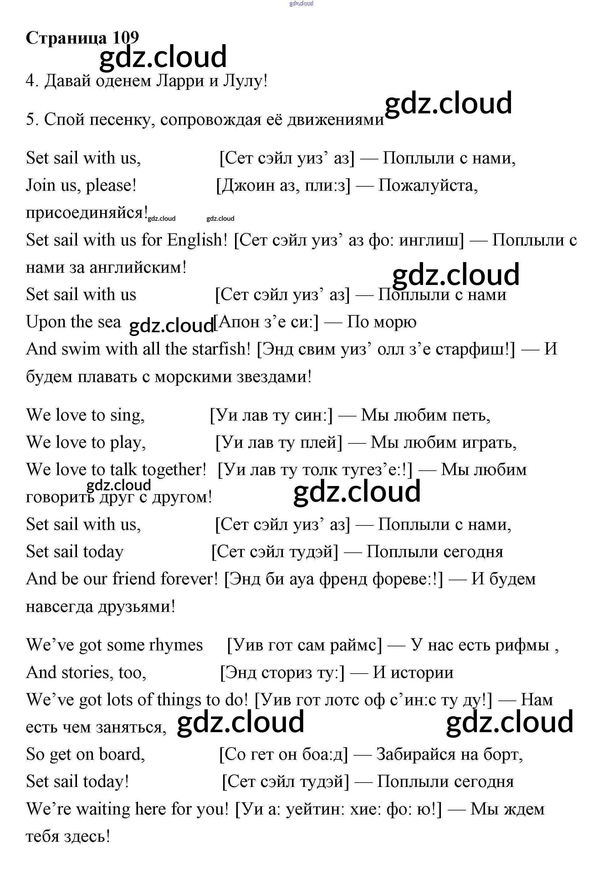 Ответ на задание 109 Учебник Английский язык за 2 (второй) класс Быкова, Дули, Эванс, Поспелова Spotlight 2017, 2021