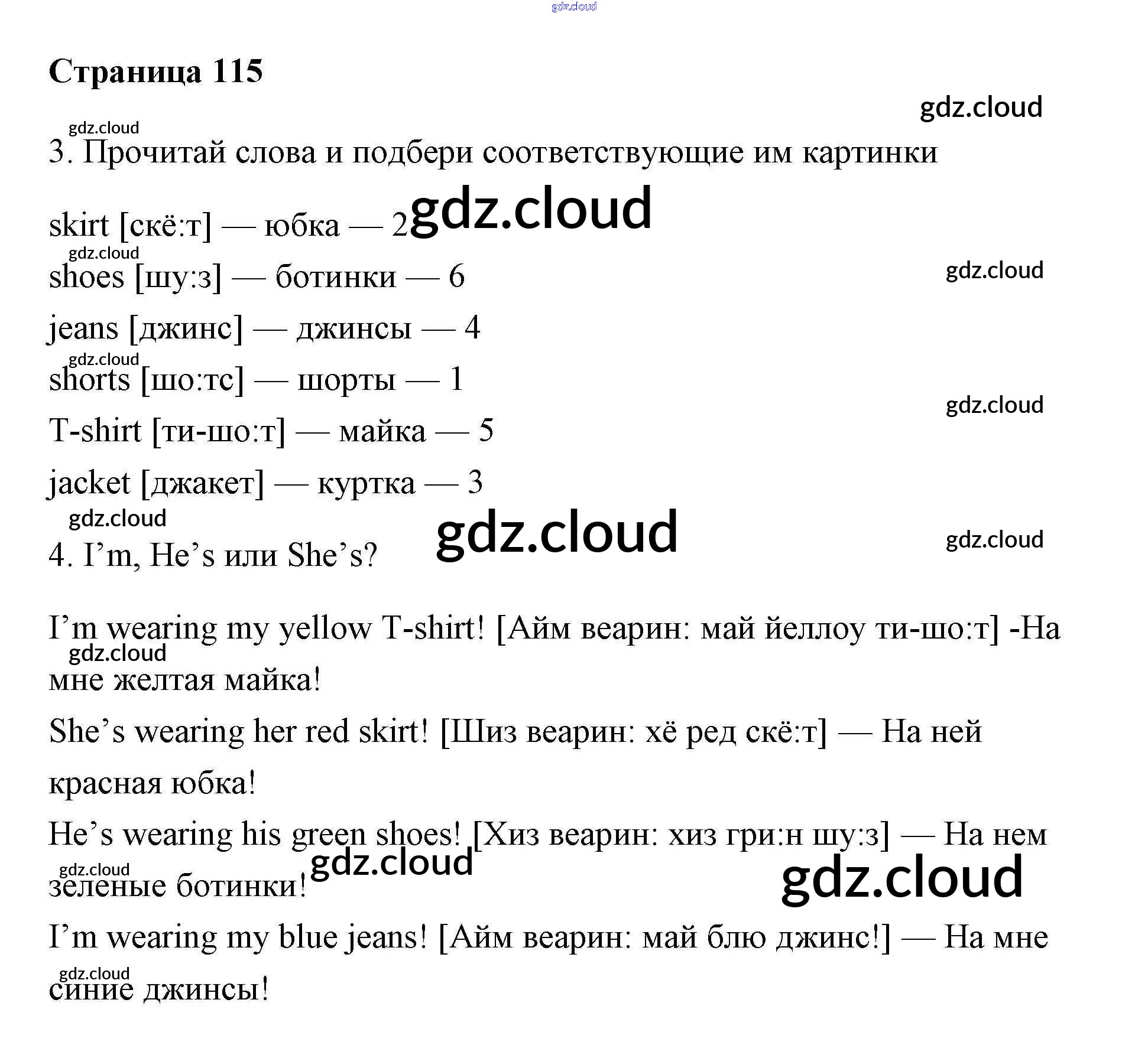 Ответ на задание 115 Учебник Английский язык за 2 (второй) класс Быкова, Дули, Эванс, Поспелова Spotlight 2017, 2021