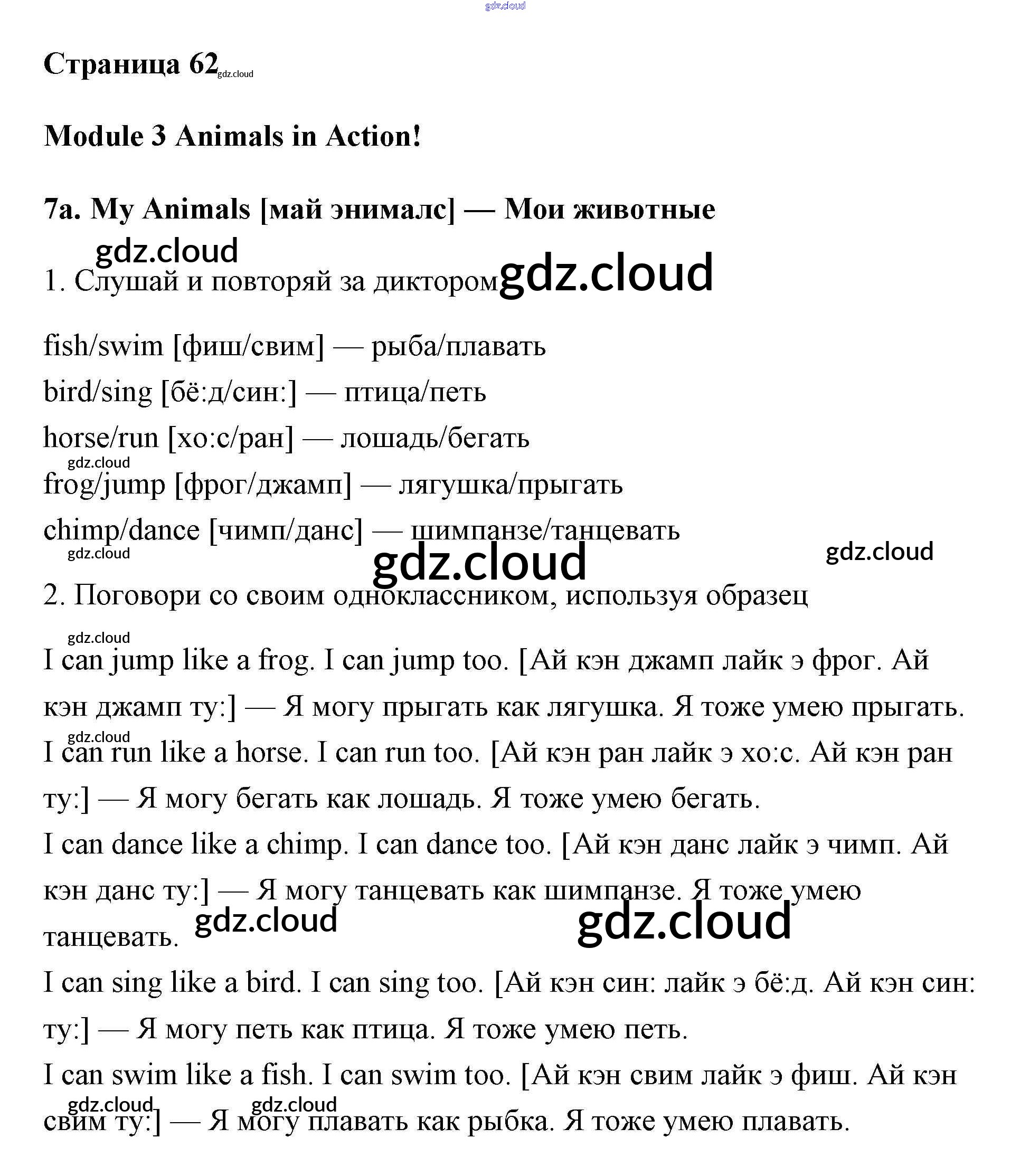 Ответ на задание 62 Учебник Английский язык за 2 (второй) класс Быкова, Дули, Эванс, Поспелова Spotlight 2017, 2021