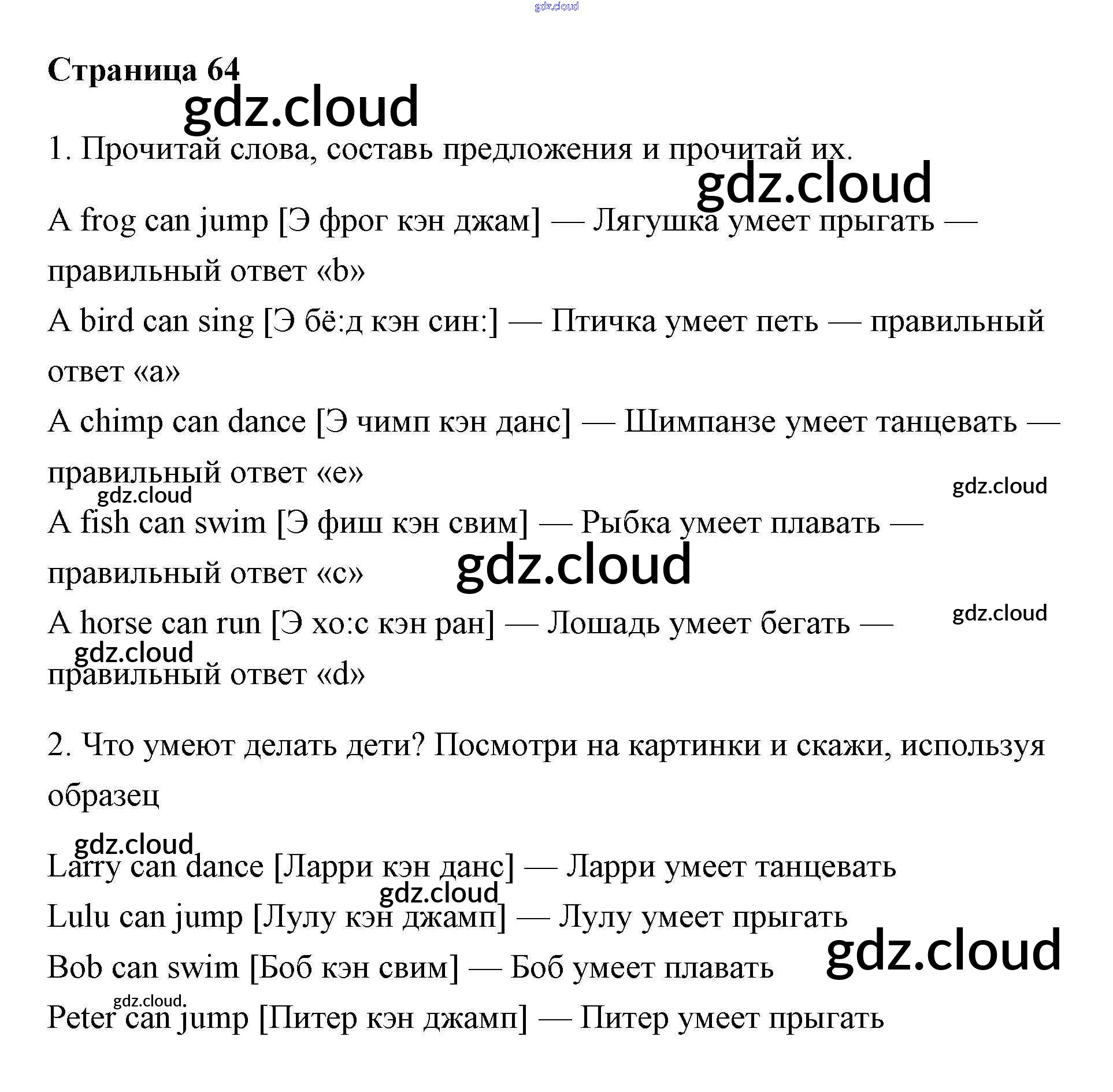 Ответ на задание 64 Учебник Английский язык за 2 (второй) класс Быкова, Дули, Эванс, Поспелова Spotlight 2017, 2021