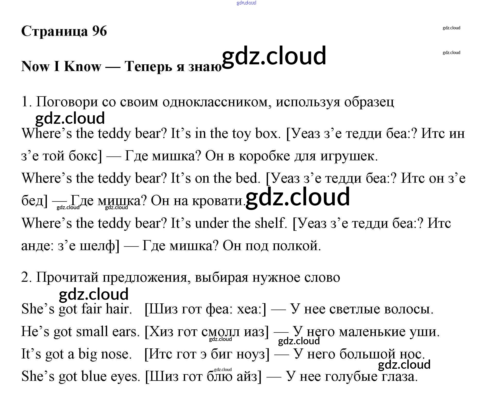 Ответ на задание 96 Учебник Английский язык за 2 (второй) класс Быкова, Дули, Эванс, Поспелова Spotlight 2017, 2021