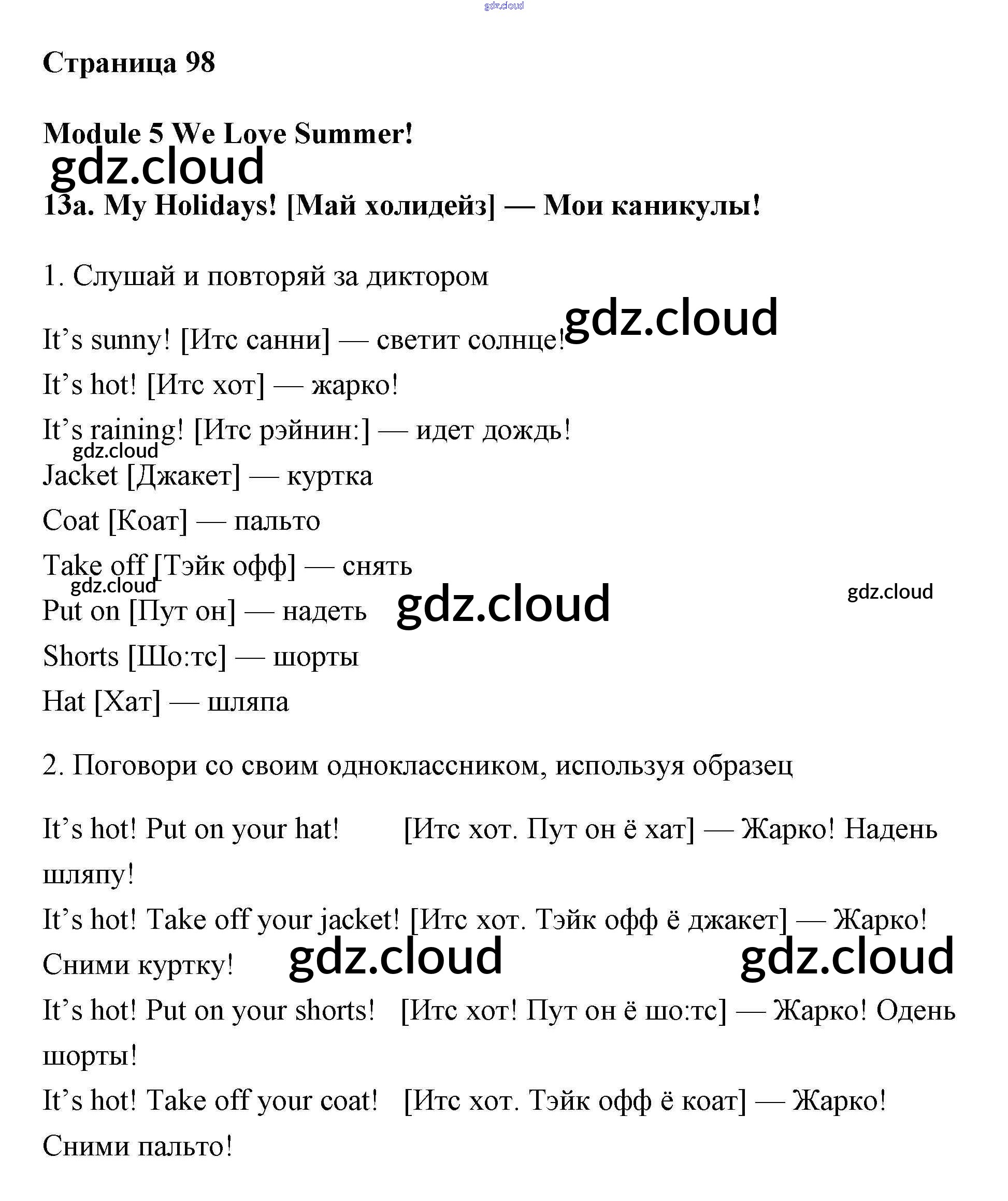 Ответ на задание 98 Учебник Английский язык за 2 (второй) класс Быкова, Дули, Эванс, Поспелова Spotlight 2017, 2021