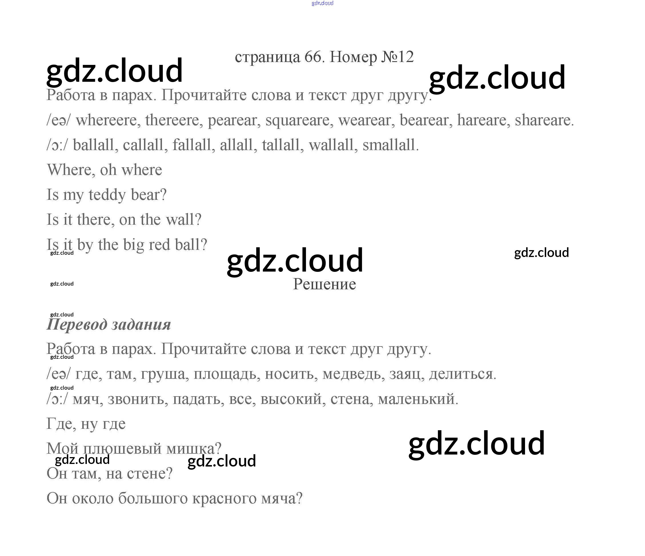 Ответ на задание стр.66 Учебник Английский язык за 2 (второй) класс Быкова, Дули, Эванс, Поспелова Spotlight 2021 Часть 1, 2