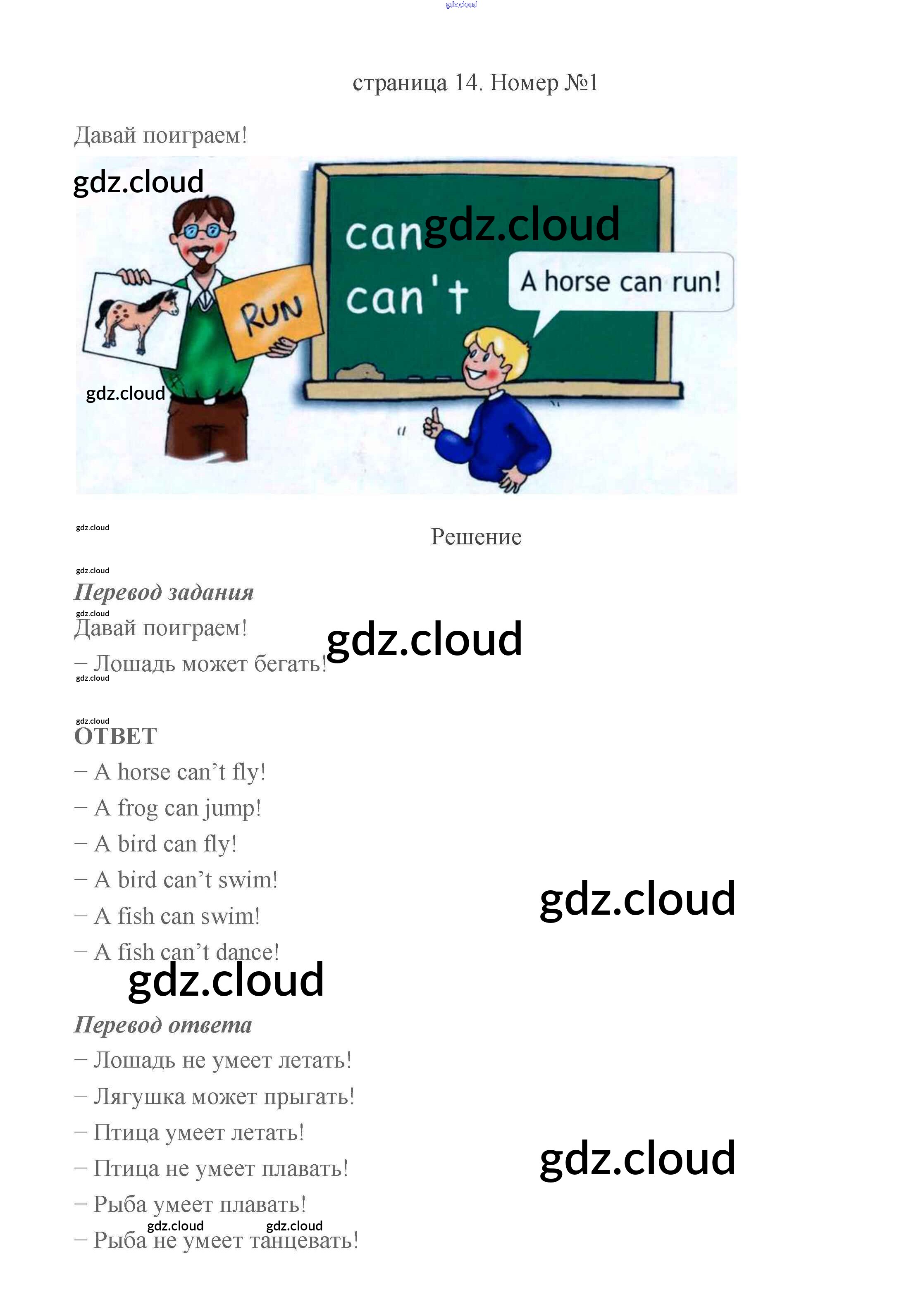 Ответ на задание стр.14 Учебник Английский язык за 2 (второй) класс Быкова, Дули, Эванс, Поспелова Spotlight 2021 Часть 1, 2
