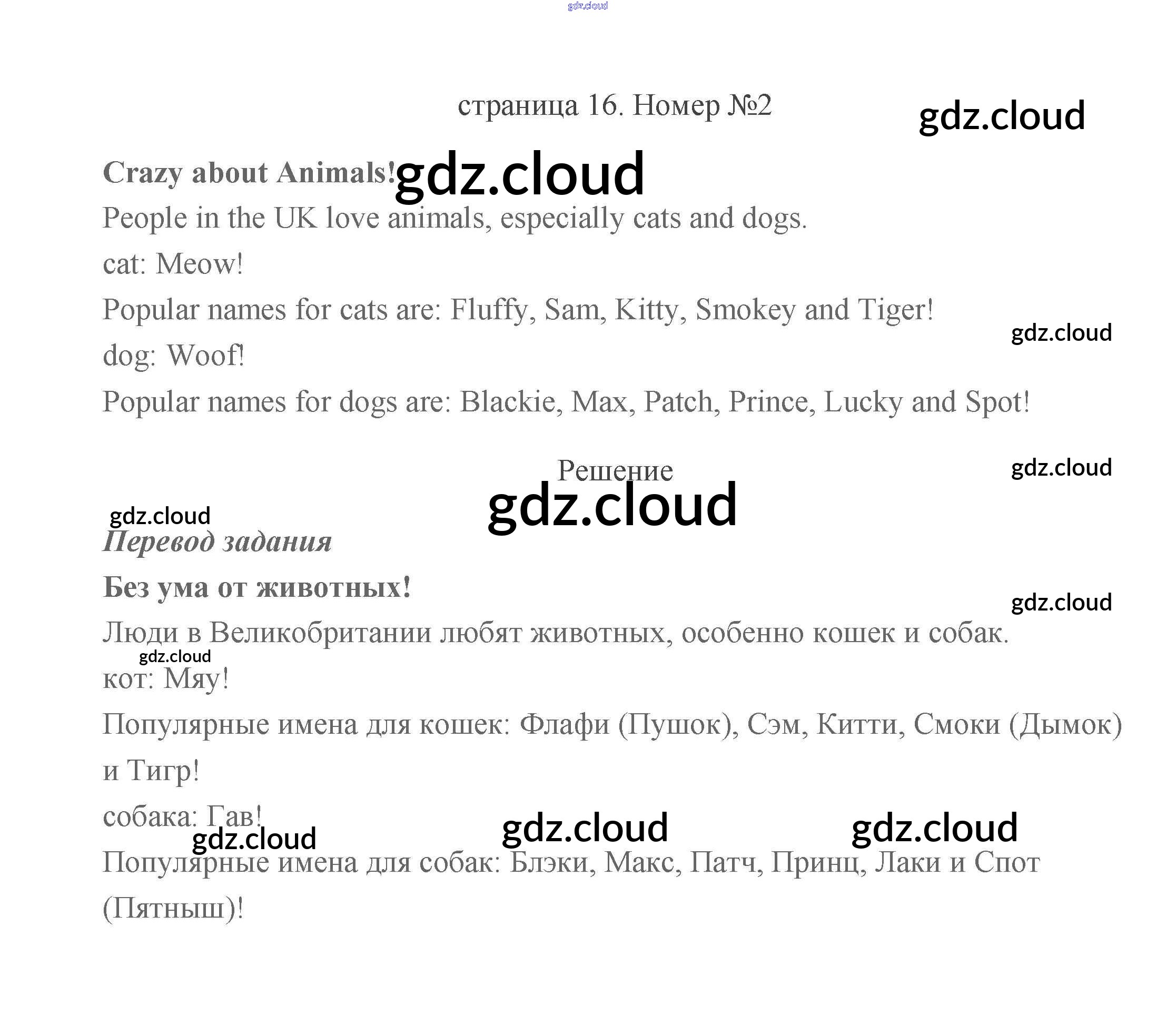 Ответ на задание стр.16 Учебник Английский язык за 2 (второй) класс Быкова, Дули, Эванс, Поспелова Spotlight 2021 Часть 1, 2