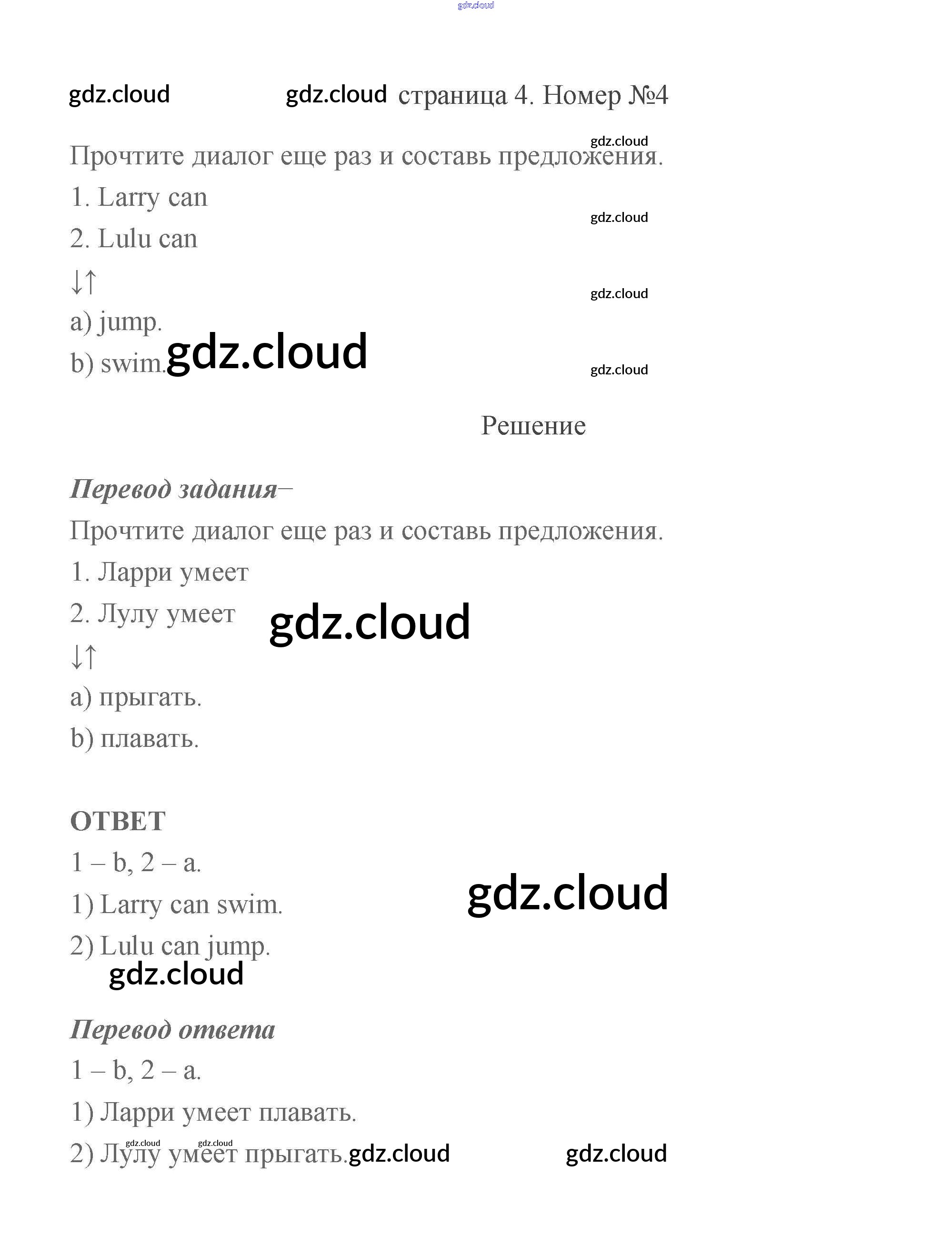 Ответ на задание стр.4 Учебник Английский язык за 2 (второй) класс Быкова, Дули, Эванс, Поспелова Spotlight 2021 Часть 1, 2 онлайн и без номера телефона.