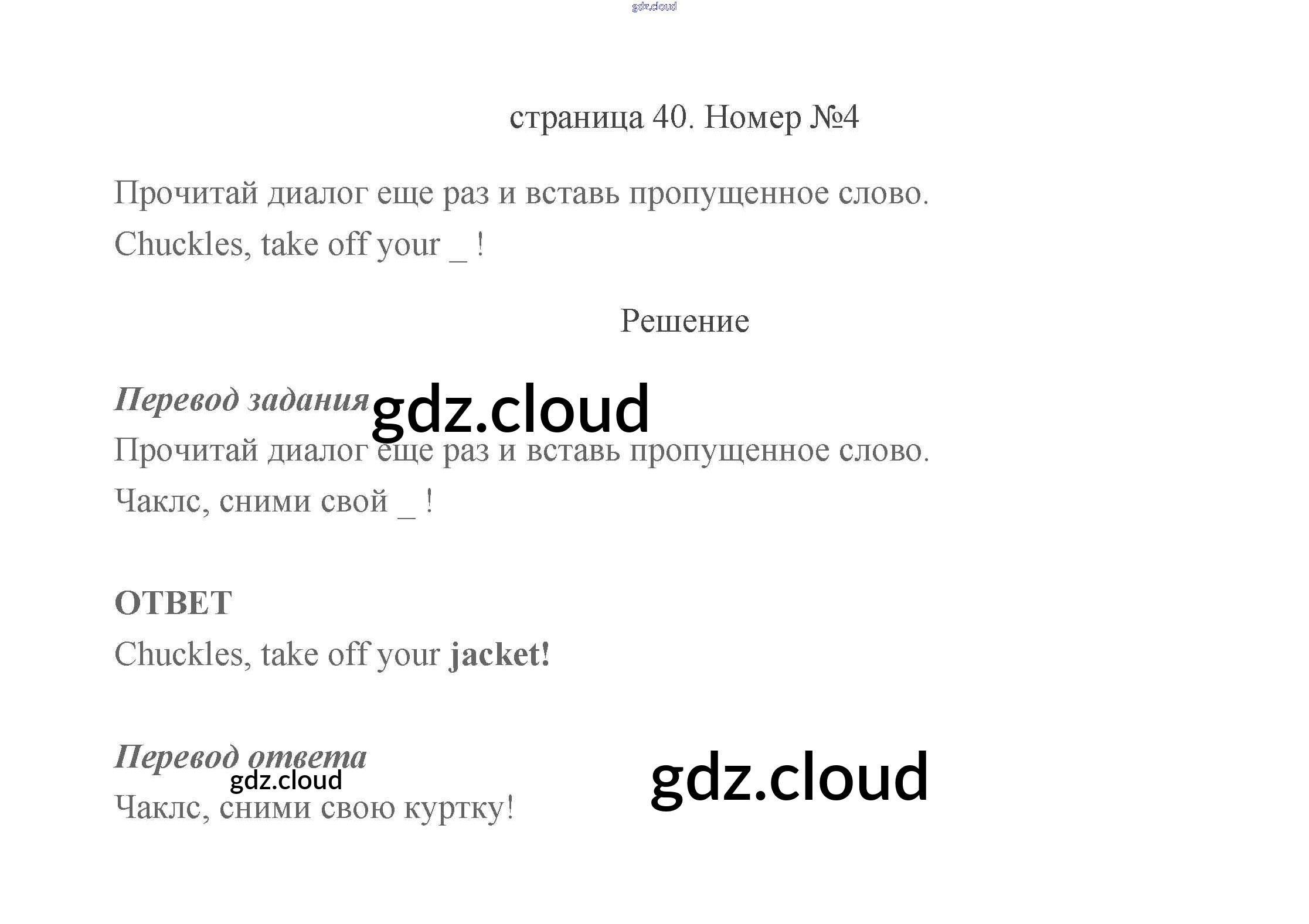 Ответ на задание стр.40 Учебник Английский язык за 2 (второй) класс Быкова, Дули, Эванс, Поспелова Spotlight 2021 Часть 1, 2