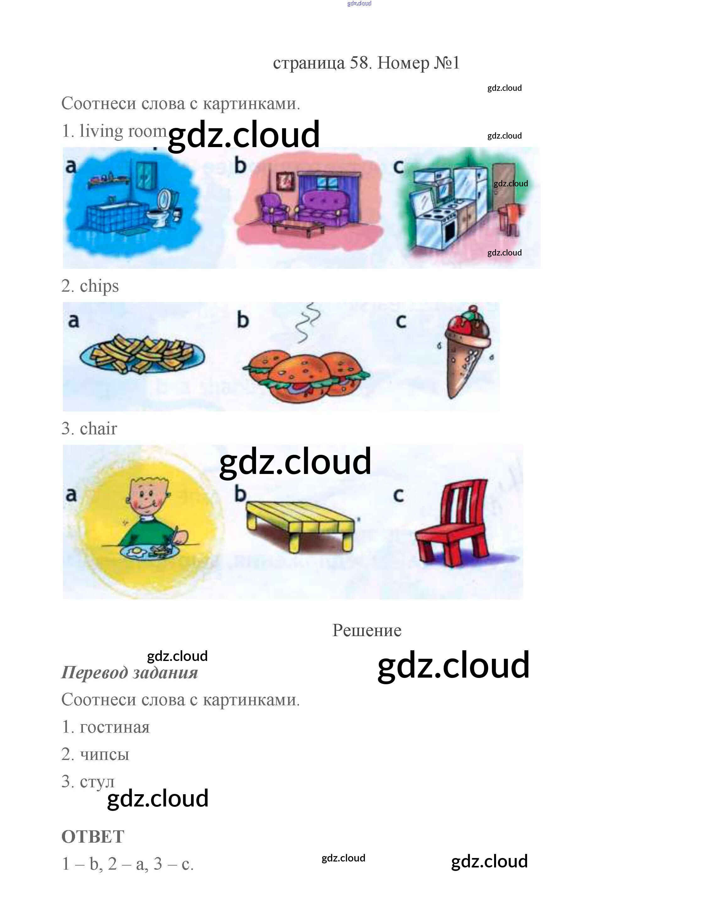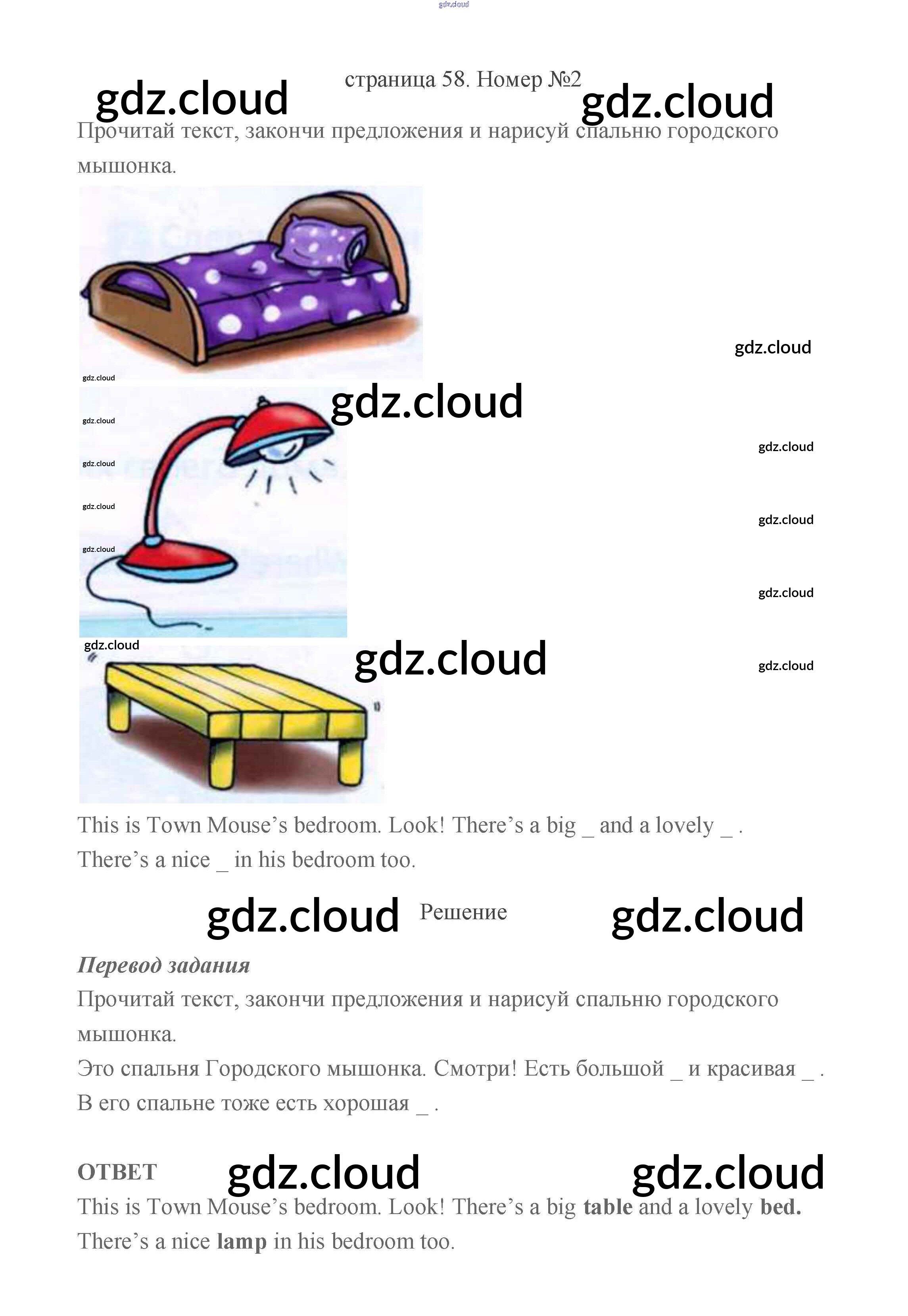 Ответ на задание стр.58 Учебник Английский язык за 2 (второй) класс Быкова, Дули, Эванс, Поспелова Spotlight 2021 Часть 1, 2