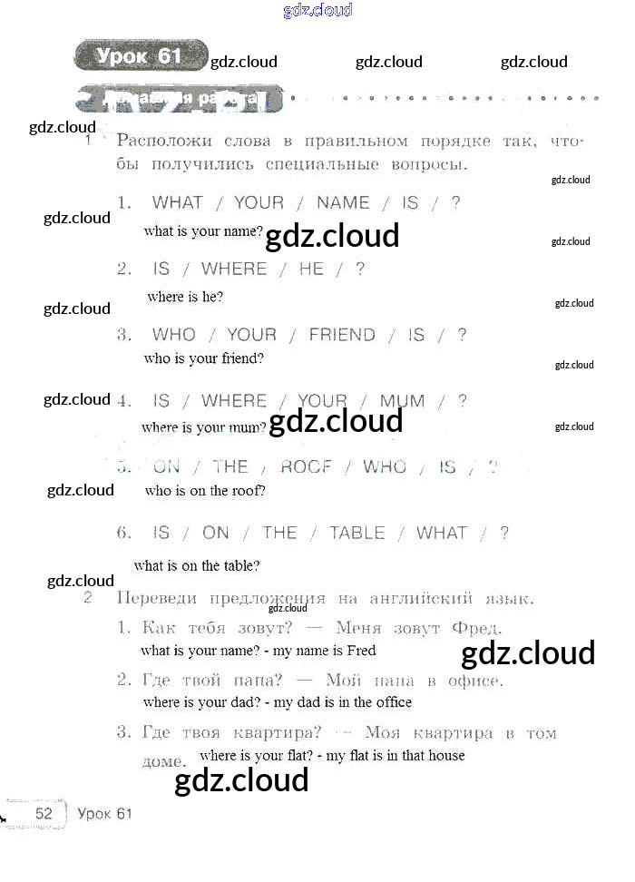 Ответ на задание 52 Рабочая тетрадь Английский язык за 2 (второй) класс Кауфман Happy English 2017