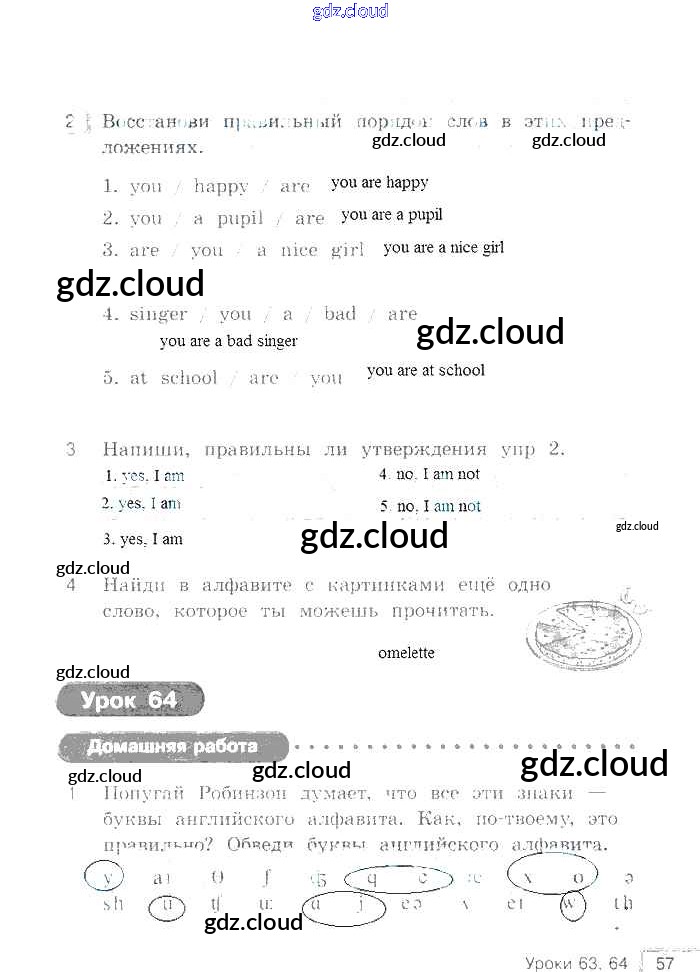Ответ на задание 57 Рабочая тетрадь Английский язык за 2 (второй) класс Кауфман Happy English 2017