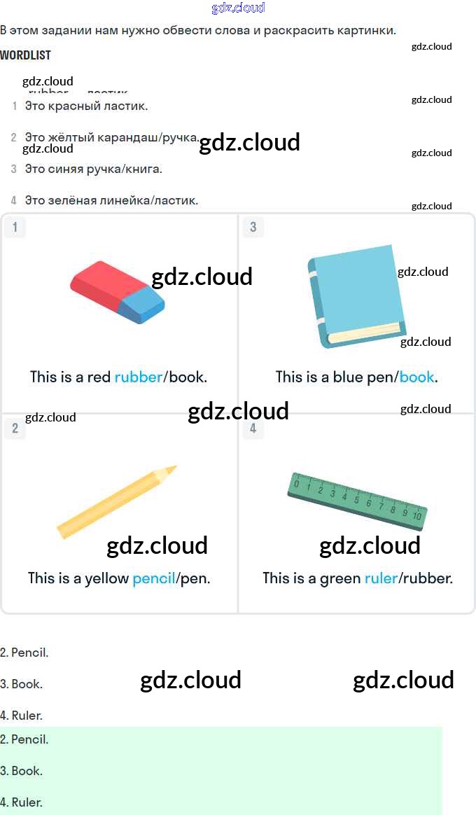 Ответы. Страницы по Английскому языку 2 класс Рабочая тетрадь Комарова Brilliant Русское слово