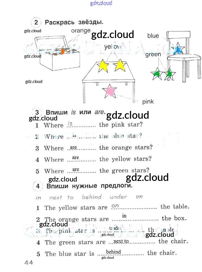 Ответ на задание 44 Рабочая тетрадь Английский язык за 2 (второй) класс Комарова, Ларионова, Перретт Brilliant 2014