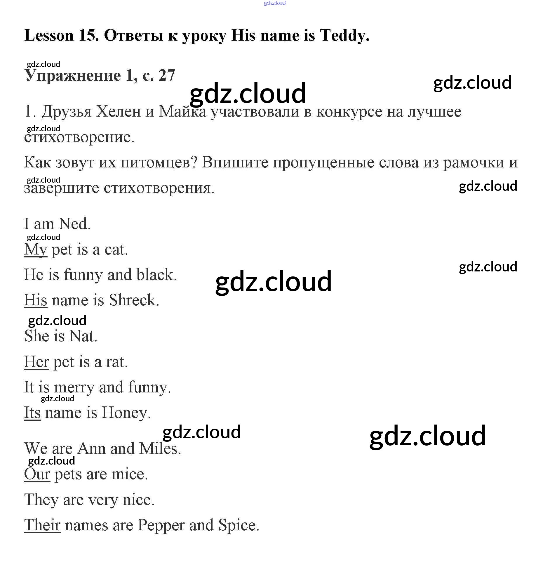 Ответы. Lesson 15. His name is Teddy по Английскому языку 2 класс Рабочая тетрадь Кузовлев Просвещение