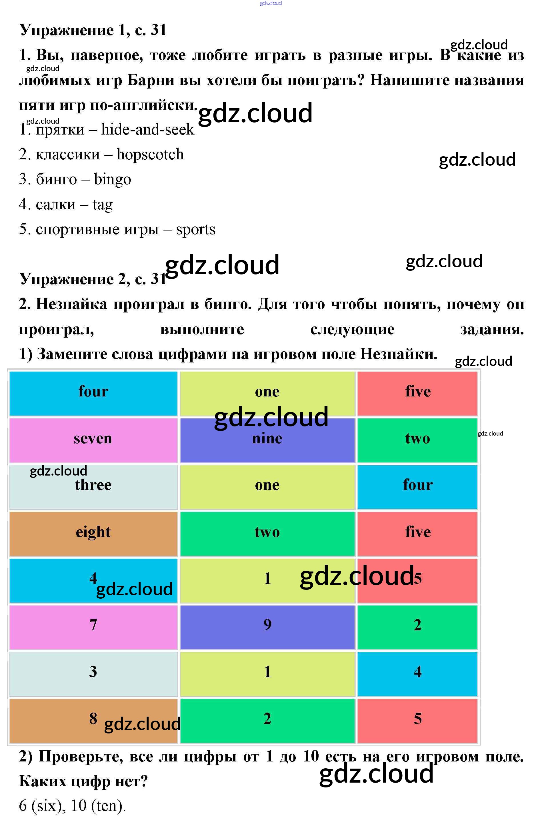 Ответ на задание 31 Рабочая тетрадь Английский язык за 2 (второй) класс Кузовлев, Перегудова, Пастухова 2011