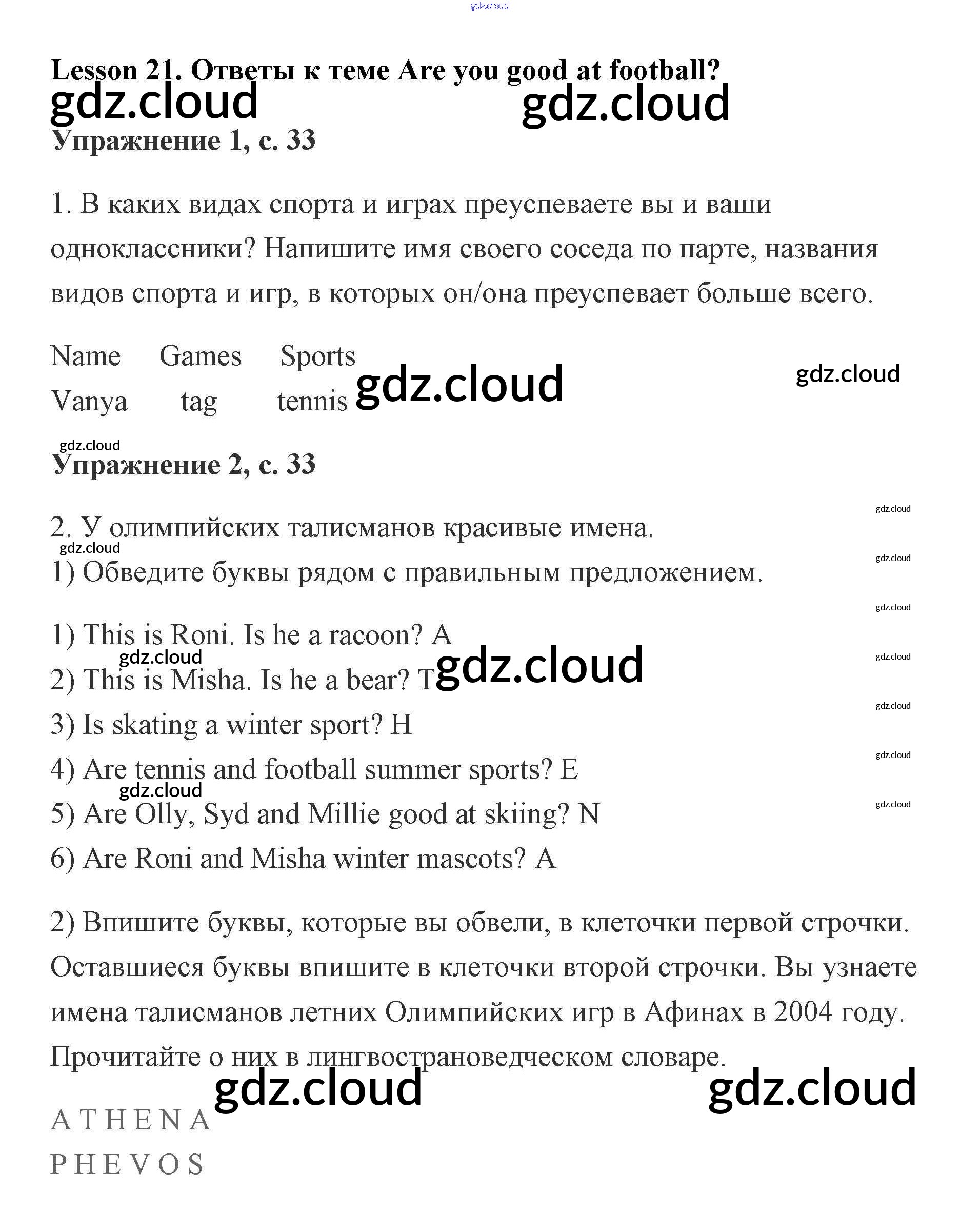 Ответы. Lesson 21. Are you good at football по Английскому языку 2 класс Рабочая тетрадь Кузовлев Просвещение