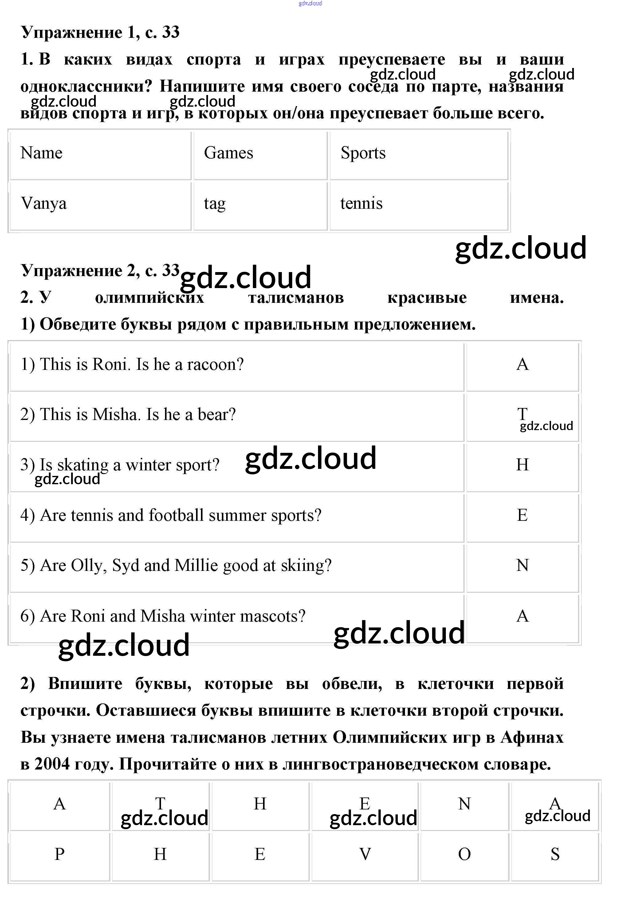 Ответ на задание 33 Рабочая тетрадь Английский язык за 2 (второй) класс Кузовлев, Перегудова, Пастухова 2011
