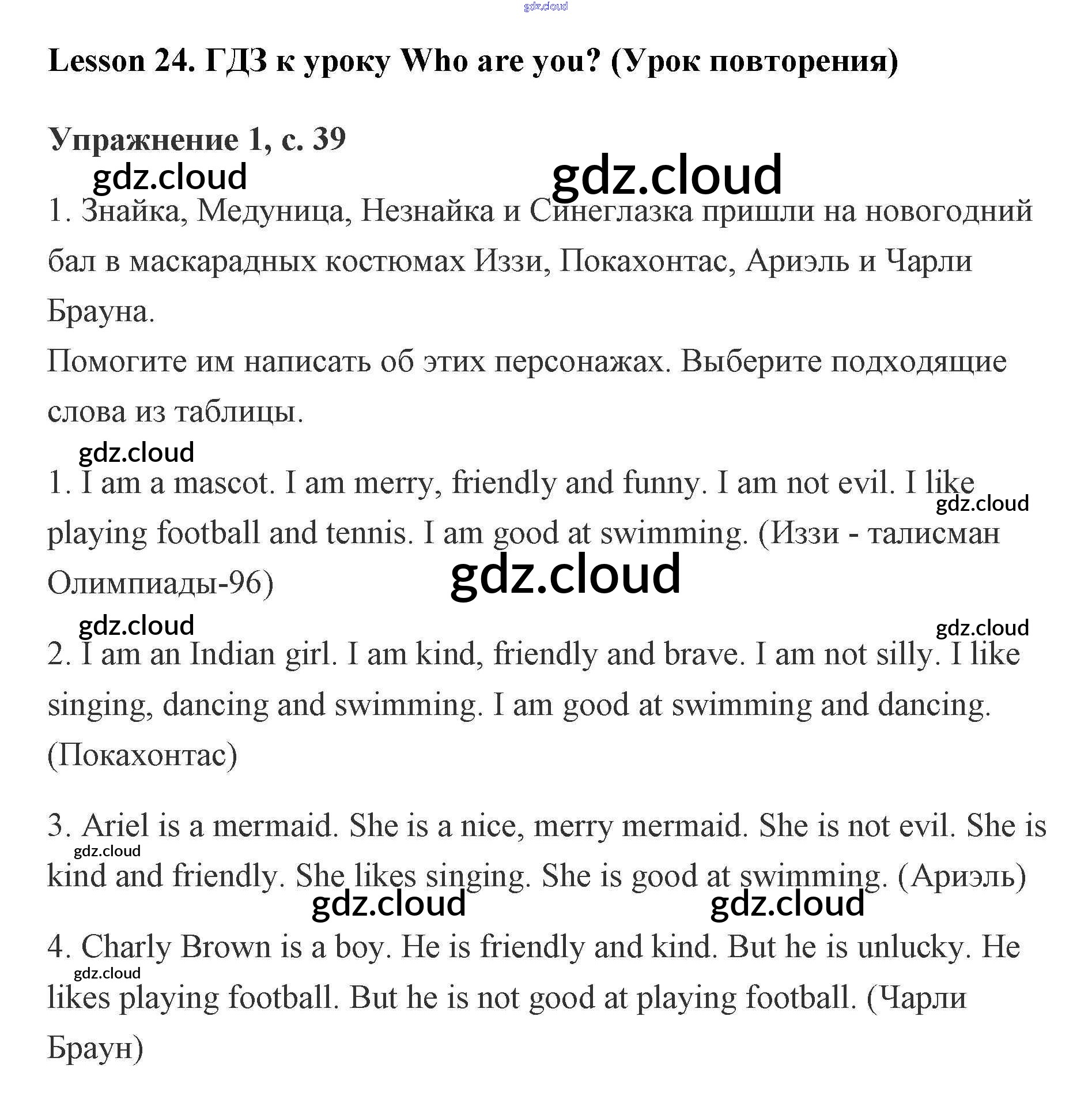 Ответы. Lesson 24. Who are you (Урок повторения) по Английскому языку 2 класс Рабочая тетрадь Кузовлев Просвещение