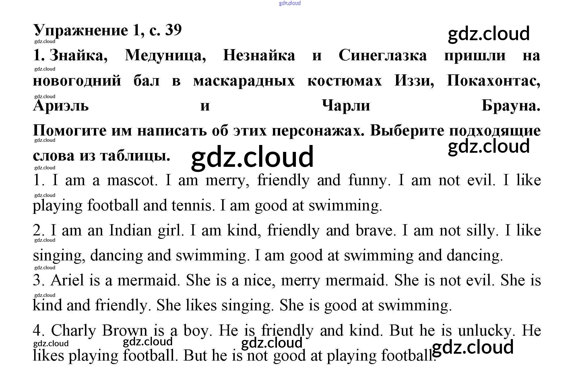 Ответ на задание 39 Рабочая тетрадь Английский язык за 2 (второй) класс Кузовлев, Перегудова, Пастухова 2011