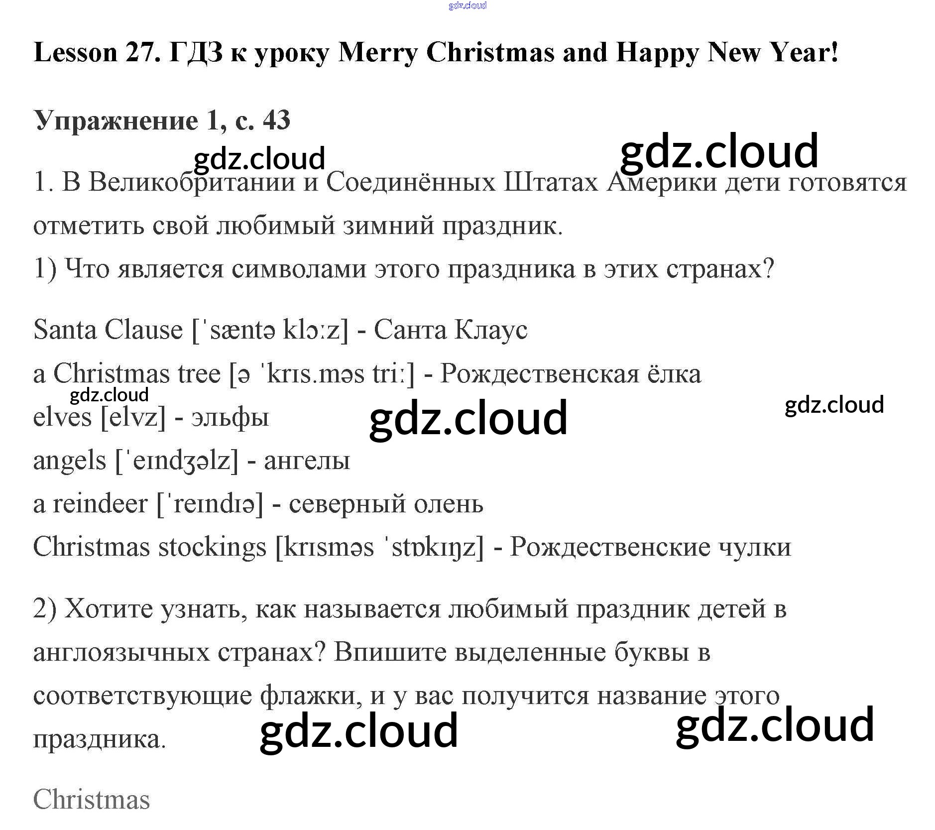 Ответы. Lesson 27. Merry Christmas and Happy New Year! по Английскому языку 2 класс Рабочая тетрадь Кузовлев Просвещение