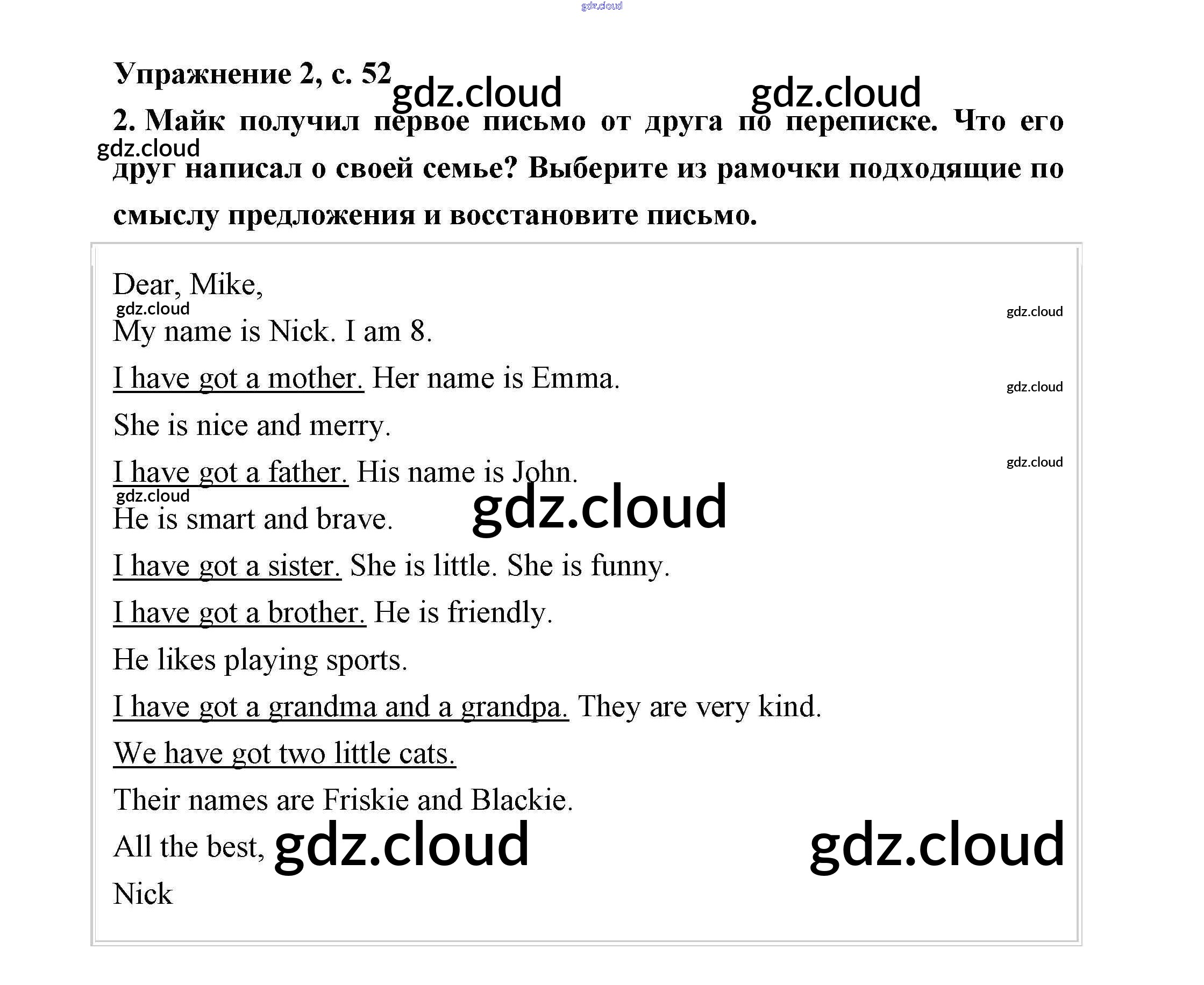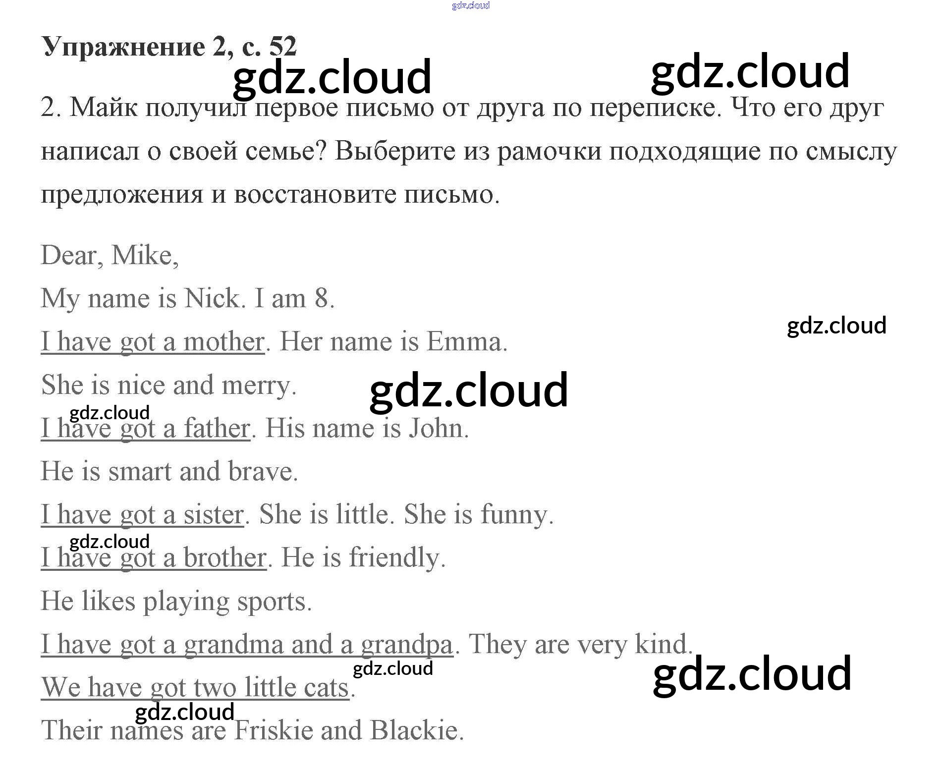 Ответ на задание 52 Рабочая тетрадь Английский язык за 2 (второй) класс Кузовлев, Перегудова, Пастухова 2011