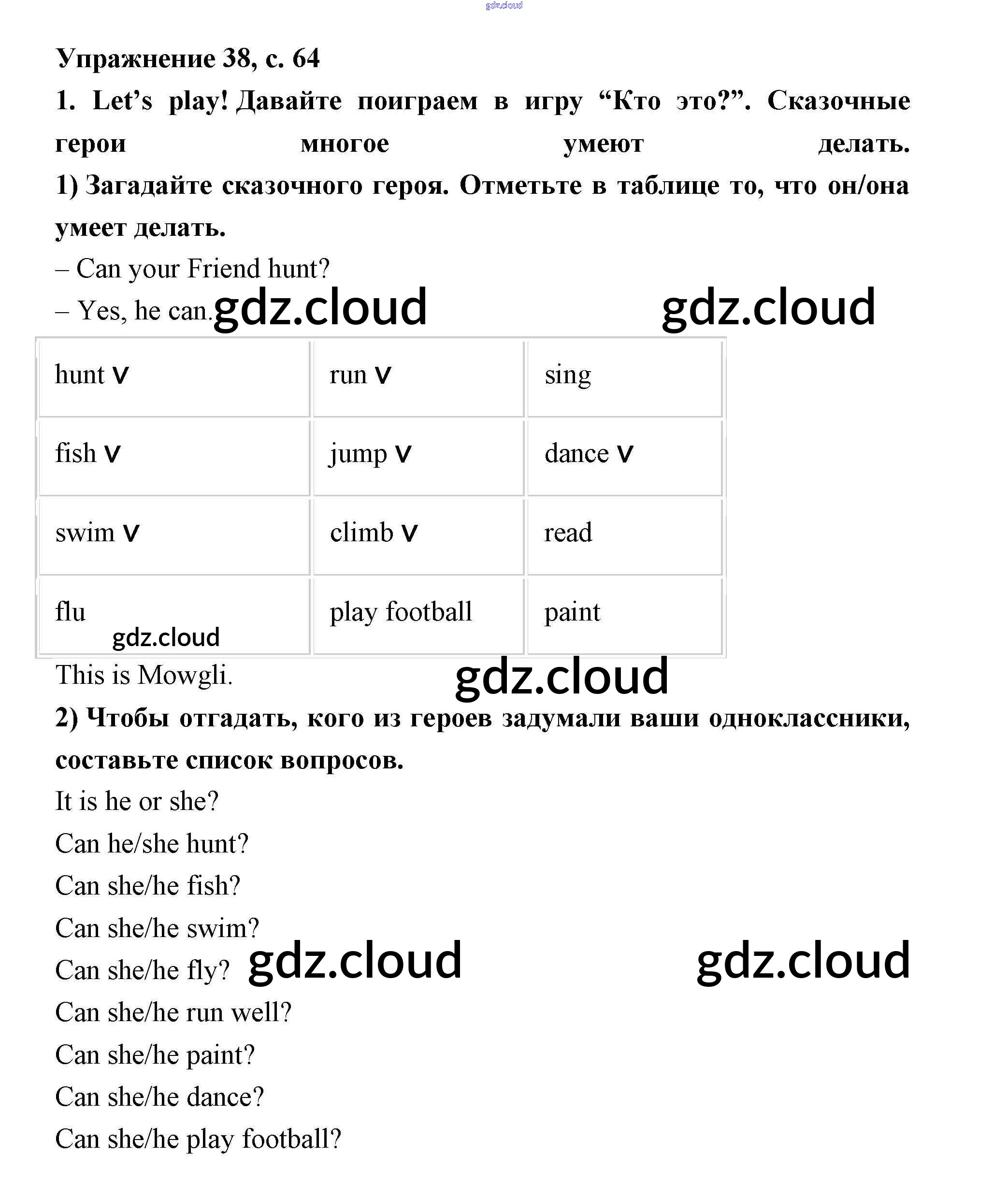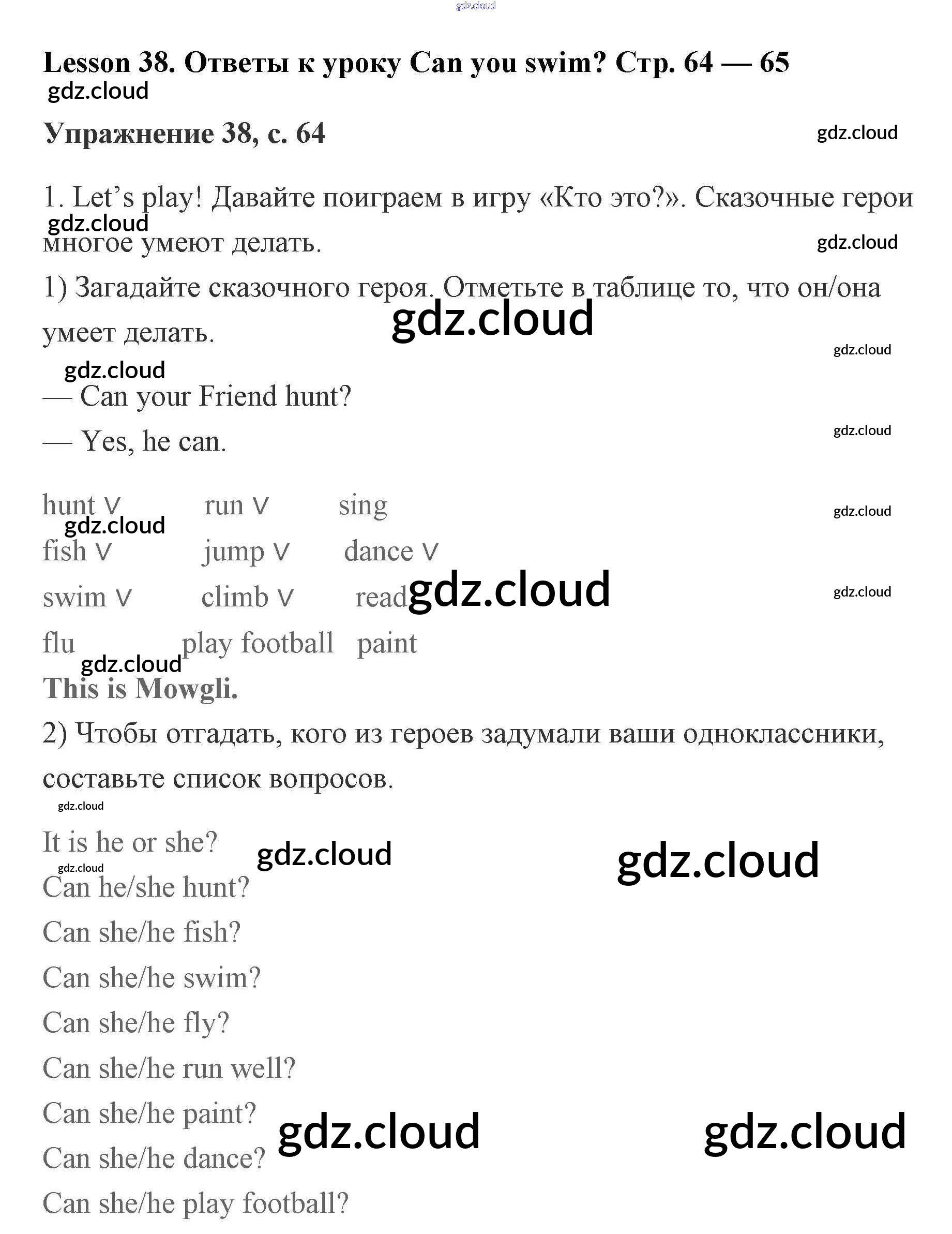 Ответы. Lesson 38. Can you swim по Английскому языку 2 класс Рабочая тетрадь Кузовлев Просвещение