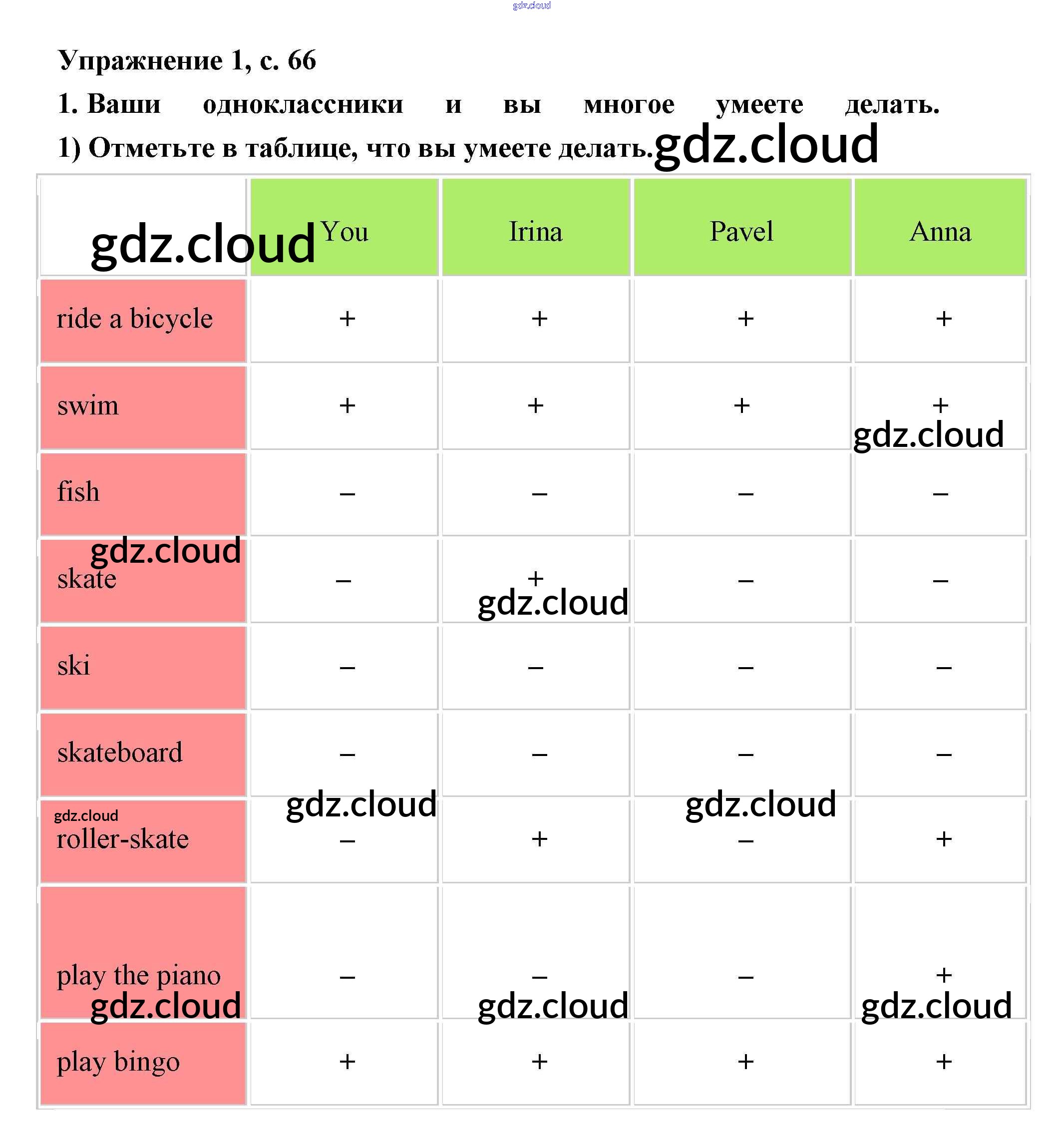 Ответ на задание 66 Рабочая тетрадь Английский язык за 2 (второй) класс Кузовлев, Перегудова, Пастухова 2011