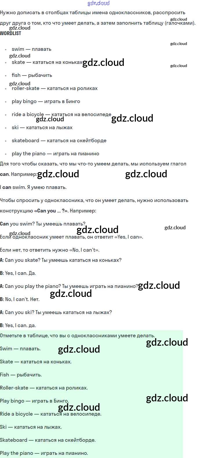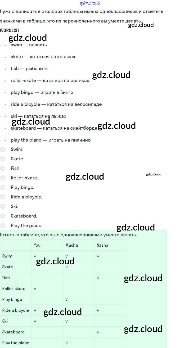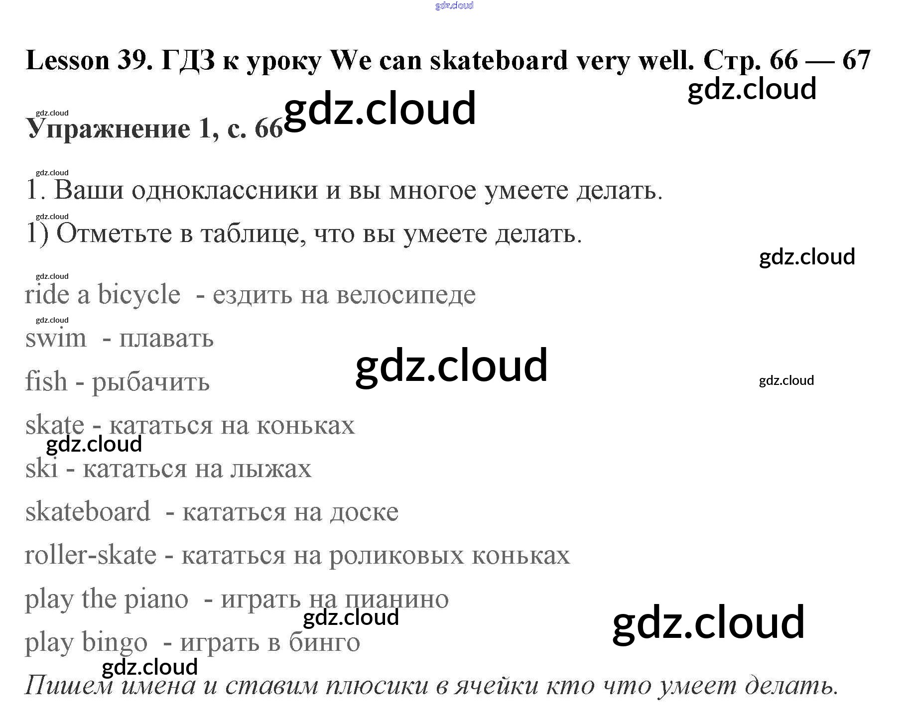 Ответы. Lesson 39. We can skateboard very well по Английскому языку 2 класс Рабочая тетрадь Кузовлев Просвещение