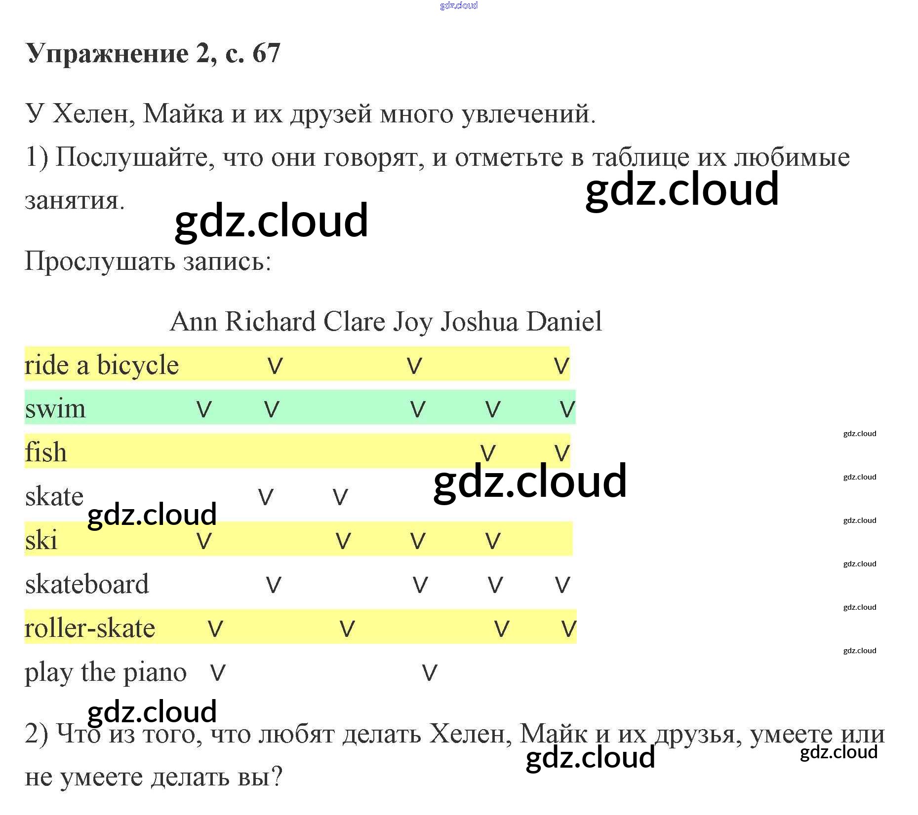 Ответ на задание 67 Рабочая тетрадь Английский язык за 2 (второй) класс Кузовлев, Перегудова, Пастухова 2011