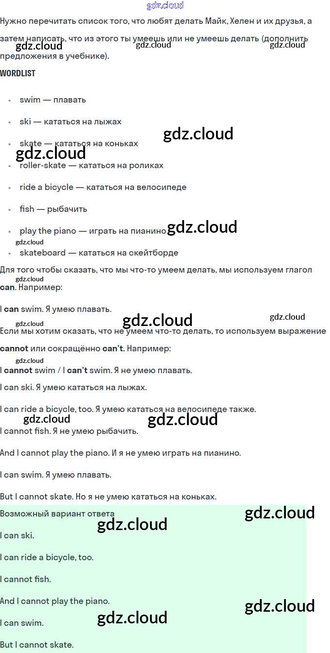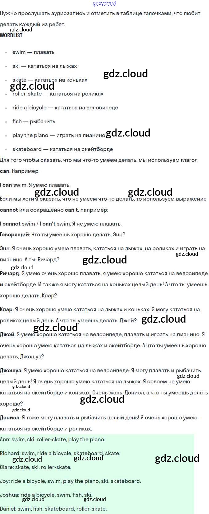 Ответы. Lesson 39. We can skateboard very well по Английскому языку 2 класс Рабочая тетрадь Кузовлев Просвещение