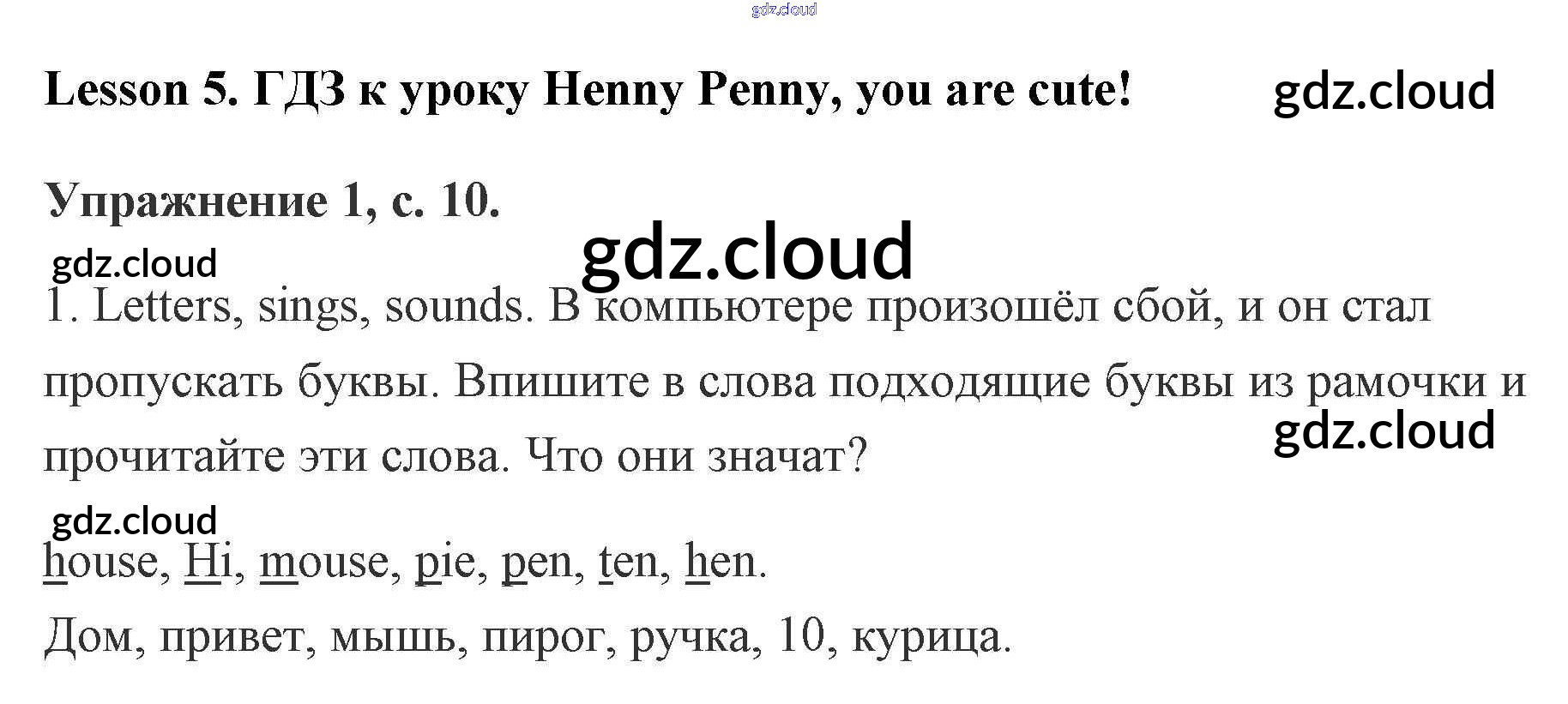 Ответы. Lesson 5. Henny Penny, you are cute! по Английскому языку 2 класс Рабочая тетрадь Кузовлев Просвещение