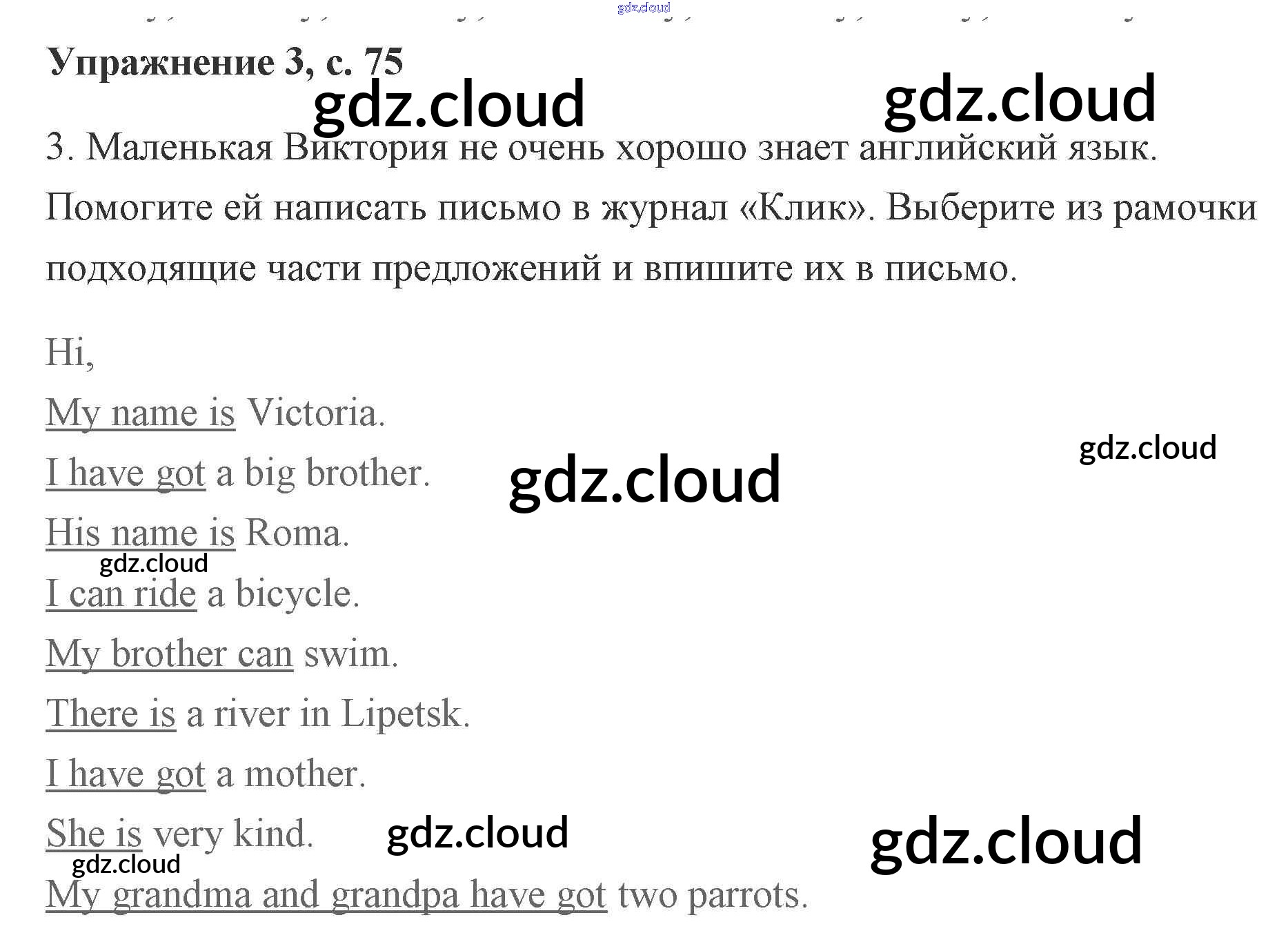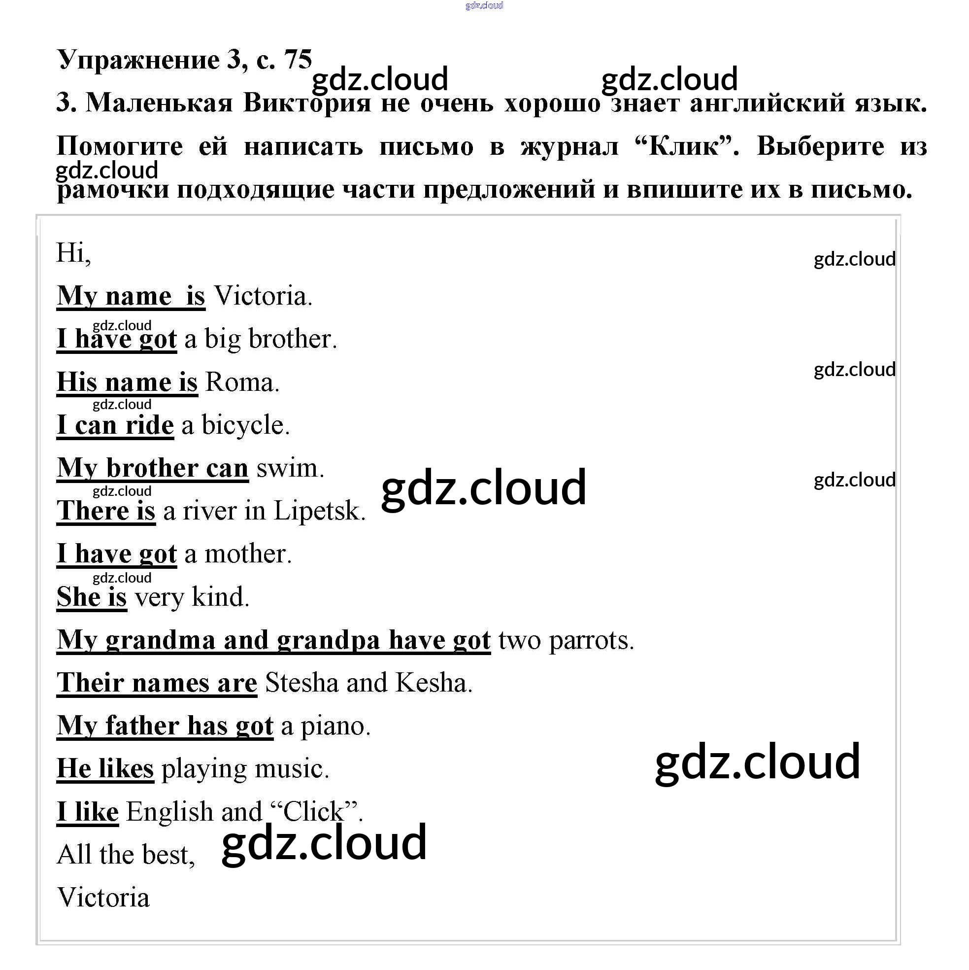 Ответ на задание 75 Рабочая тетрадь Английский язык за 2 (второй) класс Кузовлев, Перегудова, Пастухова 2011